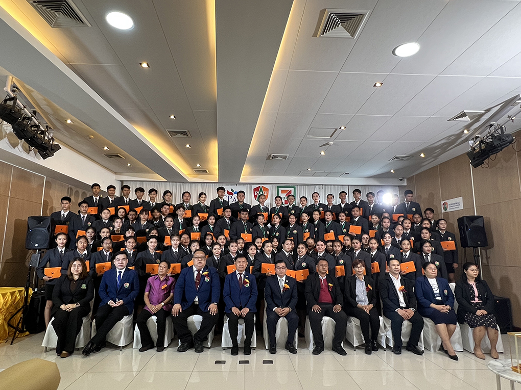โอกาสนี้ ดร.ธเรศวร์ ธนะสมบูรณ์ ที่ปรึกษาวิทยาลัยเทคโนโลยีปัญญาภิวัฒน์,นายรณภพ สังข์แก้ว ผู้ช่วยผู้จัดการทั่วไปสายงานทรัพยากรบุคคล ฝ่ายปฏิบัติการมณฑลRC RN และRSN และนางสาววรัชยา วราภัทรกรณ์ ผู้ช่วยผู้จัดการฝ่ายปฎิบัติการมณฑลRC ร่วมกันมอบรางวัลผู้มีผลการเรียนดีเด่นเพชรปัญญาระดับเหรียญทอง,เหรียญเงินและเหรียญทองแดง