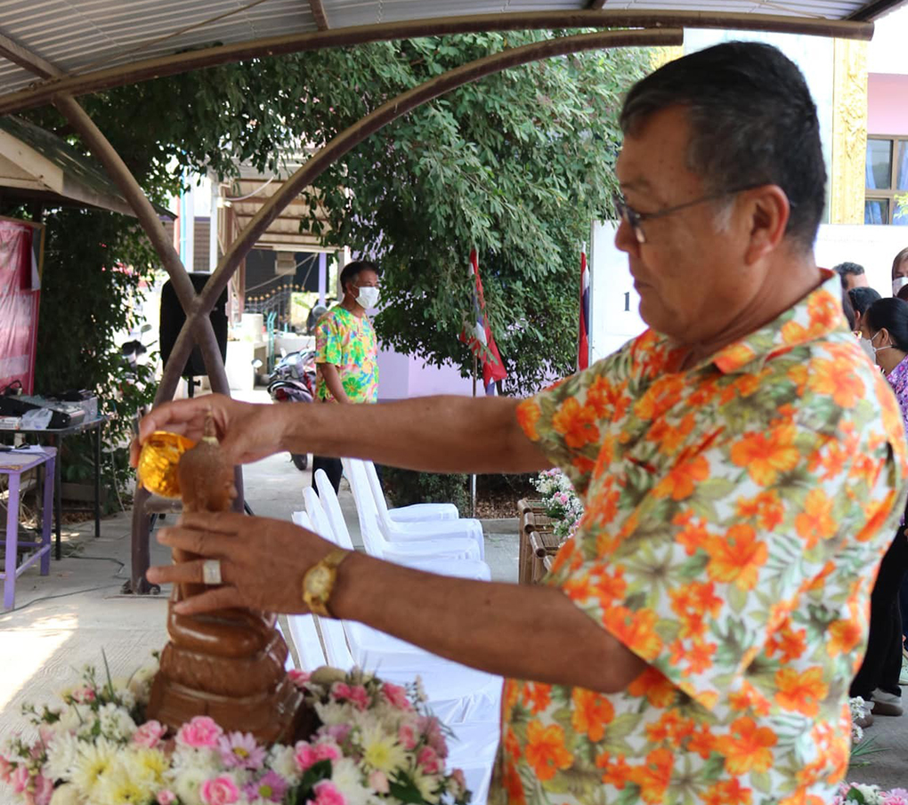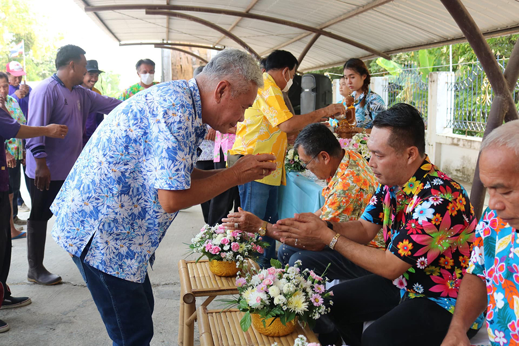 นายกอบต.เอกราช นำผู้บริหาร ข้าราชการและกลุ่มผู้ประกอบการทำกลอง รดน้ำขอพร นายเฉลิม เผ่าพยัฆ ประธานกลุ่ม หมู่บ้านทำกลองตำบลเอกราช เนื่องในเทศกาลสงกรานต์ ปี 2566