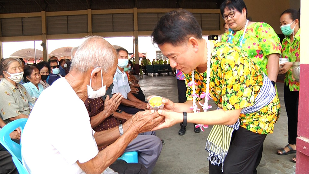 บรรยากาศสงกรานต์เริ่มแล้ว เทศบาลตำบลปลายนา อำเภอศรีประจันต์ จัดพิธีรดน้ำดำหัวขอพรผู้สูงอายุ ตามประเพณีในโอกาสวันขึ้นปีใหม่ไทย
