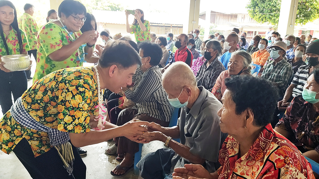 สุพรรณบุรี บรรยากาศรดน้ำขอพรผู้สูงอายุและการเดินทาง