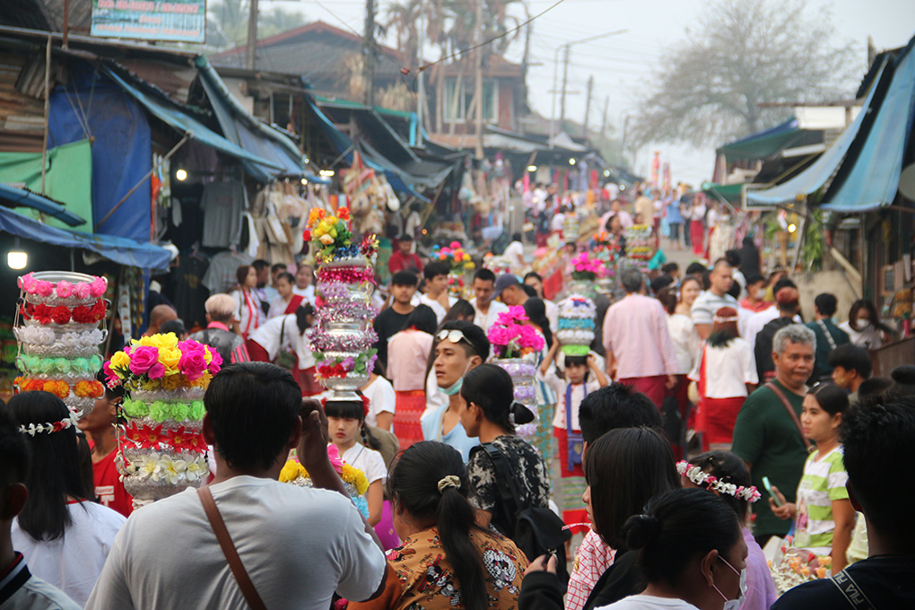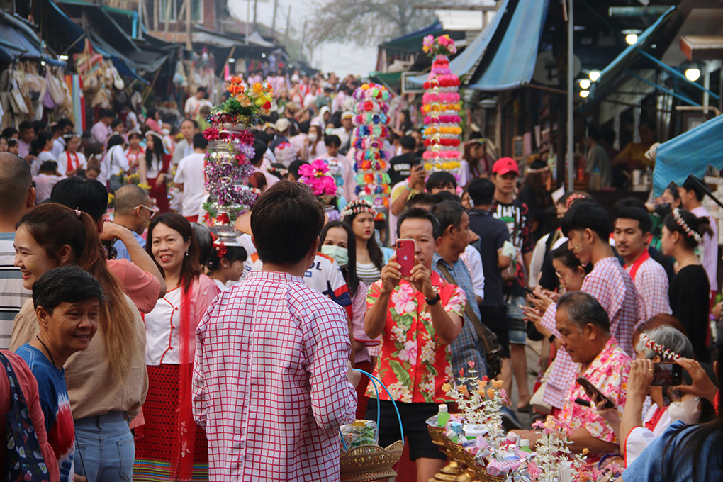 เช้าวันนี้ 14 เมษายน 2566 ที่บริเวณสะพานมอญและชุมชนชาวมอญบ้านวังกะ สถานที่ท่องเที่ยวสำคัญของอำเภอสังขละบุรี นักท่องเที่ยวจำนวนมากร่วมทำบุญใส่บาตรวิถีมอญ และเลือกชิมอาหารพื้นเมือง และซื้อสินค้าที่ระลึกพร้อมทั้งเดินชมบรรยากาศยามเช้าบนสะพานฯ ท่ามกลางอากาศยามเช้าที่เย็นสบาย โดยนักท่องเที่ยวส่วนใหญ่มาเป็นครองครัว ที่เดินทางมาจากต่างจังหวัด นอกจากนั้นยังมีนักท่องเที่ยวที่เป็นกลุ่มแรงงานชาวเมียนมาเชื้อสายมอญ จากพื้นที่ใกล้เคียงอาทิ สมุทรสาคร สมุทรสงคราม นครปฐม กทม และนนทบุรี จำนวนกว่า 100 0 คนเดินทางมาเที่ยวในพื้นที่ เนื่องจากไม่สามารถเดินทางกลับไปร่วมงานสงกรานต์ในบ้านเกิด(ประเทศเมียนมา) เนื่องจากปัญหาการเดินทางและสถานการณ์การส็รบระหว่างทหารเมียนมาและชนกลุ่มน้อยตามแนวชายแดนที่ยังเกิดขึ้นอย่างต่อเนื่อง ทำให้แรงงานเหล่านี้เลือกที่จะเดินทางมาเที่ยวที่นี่ เนื่องจากมีบรรยากาศ วัฒนธรรม การแต่งกาย ประเพณีสงกรานต์ที่คล้ายๆกัน เพื่อคลายความคิดถึงบรรยากาศสงกรานต์ที่บ้านเกิด(เมียนมา)