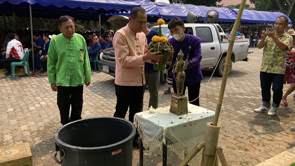 ทางนายปธิกร เอี่ยมสะอาด นายอำเภอไชยปราการ ได้ทำการวางบวงสรวงสักการะบูชาสรงน้ำพระเจ้าพรหม มหาราช สรงน้ำหลวงปู่บุญเย็นแล้วจุดเทียนธุปพระกอบพิธีเจริญพระพุทธคุณเพื่อเป็นมงคลแก่ทุกฝ่ายที่เข้าร่วมแล้วถวายสังคทานแก่พระภิกษุสงฆ์ จากนั้นทางนายพิชัย เลิศพงศ์อดิศร นายกองค์การบริหารส่วนจังหวัดเชียงใหม่ นายปธิกร เอี่ยมสะอาดและนายอำเภอไชยปราการ ร่วมวัฒนธรรมอำเภอไชยปราการได้นำประชาชนทำการนกน้ำขมิ้นส้มปล่อยรดมือพระสงฆ์ แล้วมอบผ้าห่มนาโนแก่ผู้ชราจำนวน200คน เป็นการดำหัวตามประเพณีล้านนา ทางประชาชนอำเภอไชยปราการก็ได้รดน้ำดำหัวทางนายพิชัย เลิศพงศ์อดิศร นายกองค์การบริหารส่วนจังหวัดเชียงใหม่ นายปธิกร เอี่ยมสะอาดและนายอำเภอไชยปราการ และ ขจรศักดิ์ วงศ์สุข ประธานสภาวัฒนธรรมอำเภอไชยปราการ แล้วเสร็จพิธี ทางวัฒนธรรมแจ้งว่าได้ทำเป็นประเพณีทุกปีปีนี้ตัวแทนประชาชนมาร่วมจำนวนมากกว่า1,000คน