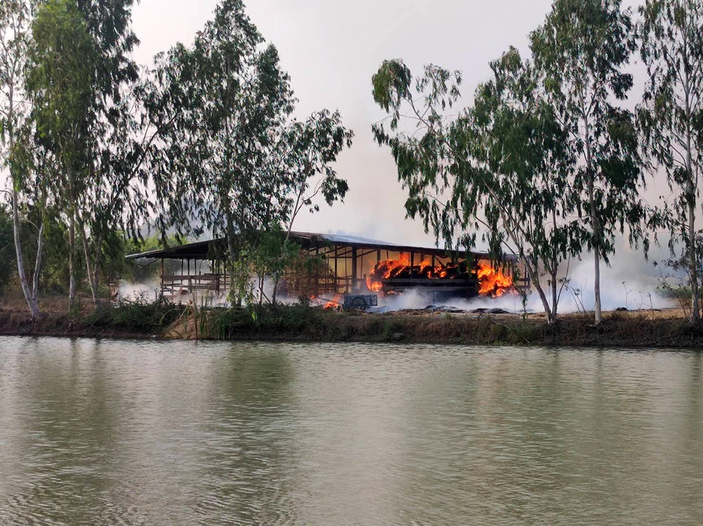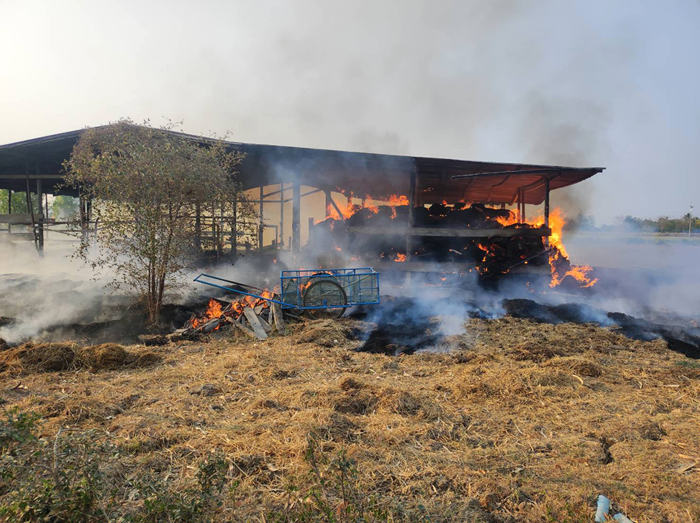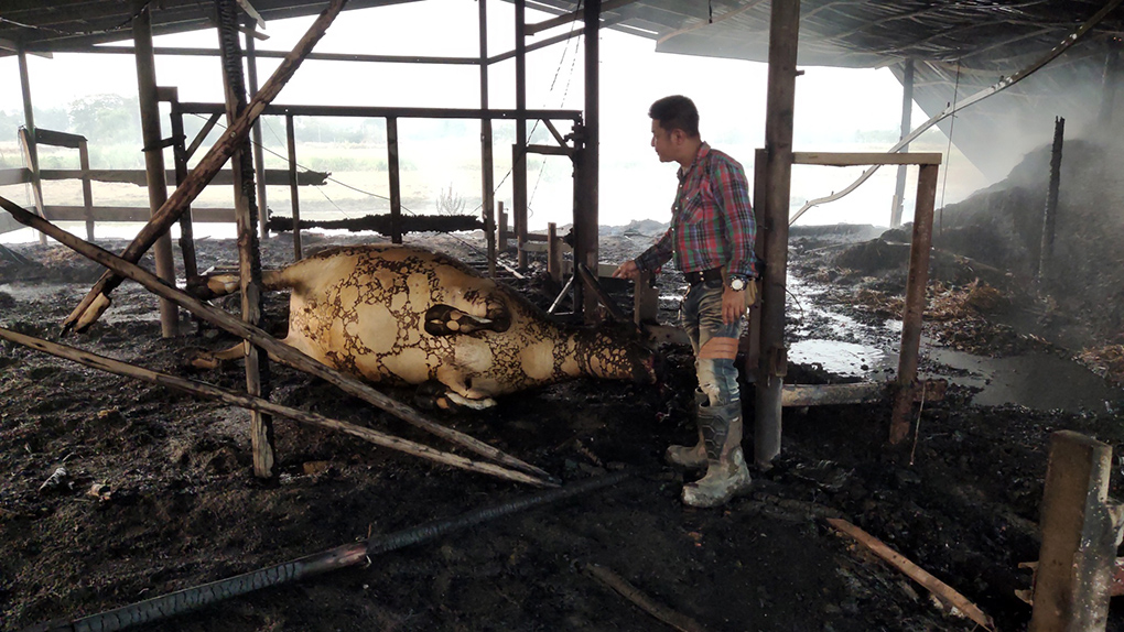 สุพรรณบุรี สลดเจ้าของสุมไฟไล่ยุงลามไหม้โรงฟางคลอกควายท้องแก่ตายคากองไฟ2ตัว