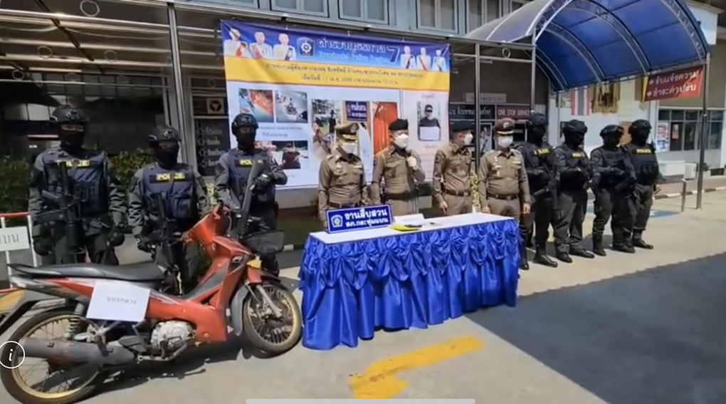 เมื่อเวลาประมาณ 10.30 น.ของวันที่ 20 เมษายน 2566 ที่สถานีตำรวจภูธรกระทุ่มแบน อ.กระทุ่มแบน จ.สมุทรสาคร พล.ต.ท.ธนายุตม์ วุฒิจรัสธํารงค์ ผบช.ภ.7 พร้อมด้วย พล.ต.ต.ดร.จักษ์ จิตรธรรม ผบก.ภ.จว.สมุทรสาคร พ.ต.อ.เสรีฐกาญจน์ จันทร์ด้วง ผกก.สภ.กระทุ่มแบน,พ.ต.ท.วุฒิชัย ทวีกาญจนวัฒน์ รอง ผกก.สส.สภ.กระทุ่มแบน และเจ้าหน้าที่ตำรวจชุดปฏิบัติการ ได้ร่วมกันแถลงผลการจับกุมผู้ต้องหาตามหมายจับศาลจังหวัดสมุทรสาคร ที่ 281/2566 คือ นายธนกฤต หรือเติ้ล กุ่ยสาคร อายุ 24 ปี โดยกล่าวหาว่ากระทำความผิดฐาน “ชิงทรัพย์ผู้อื่น โดยใช้กำลังประทุษร้าย โดยมีอาวุธปืน โดยใช้ยานพาหนะเพื่อสะดวกแก่การกระทำความผิด หรือพาทรัพย์นั้นไป หรือเพื่อให้พ้นจากการจับกุม,มีอาวุธปืน และเครื่องกระสุนปืนไว้ในความครอบครองโดยไม่ได้รับอนุญาต,พกพาอาวุธปืนไปในเมือง หมู่บ้าน หรือทาง สาธารณะ โดยไม่มีเหตุอันสมควร และใช้อาวุธปืนข่มขู่ผู้อื่น ทำให้ตกใจกลัว” พร้อมของกลางตรวจพบ ได้แก่ สร้อยคอทองคํา น้ำหนัก 1 บาท จํานวน 1 เส้น , แหวนทองคํา น้ำหนัก 1 สลึง จำนวน 1 วง เงินสด จำนวน 46,120 บาท อาวุธปืน(พลาสติก) สีดํา 1 กระบอก และ รถจักรยานยนต์ ยี่ห้อ HONDA รุ่น WAVE 100 สีแดง ทะเบียน ฬษอ 300 กรุงเทพ ฯ