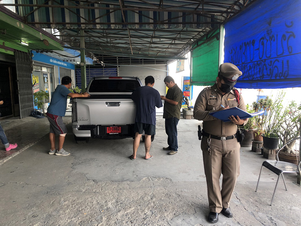 ที่เกิดเหตุเป็นตึกแถว ริมถนนมาลัยแมน พบนายจตุรงค์ น้อยทวี อายุ 31 ปี เจ้าของบ้าน ยืนรออยู่เมื่อเจ้าหน้าที่ไปถึงได้ชี้ให้ดูรถยนต์กระบะยี่ห้ออีซูซุ 4 ประตูทะเบียน ป้าย แดง หมายเลข ก -0882 สุพรรณบุรี ซึ่งจอดไว้หน้าบ้าน โดยมีร่องรอยถูกคนร้ายขโมยถอดไฟท้ายรถ ไปยกชุด ทั้งข้างซ้าย และ ข้างขวา ซึ่งมีมูลค่าข้างละประมาณ 5,000 บาท รวม 2 ข้างประมาณ 10,000 บาท หลังก่อเหตุคนร้ายได้เปิดฝาท้ายรถทิ้งไว้ และ มีตะปูเกลียวยึดไฟตกอยู่ 1 ตัว