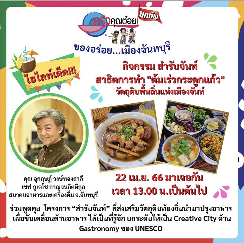 ปักหมุด แล้วเดินทางมาร่วมทัพกับ “ครัวคุณต๋อย ยกทัพ” บุกเซ็นทรัลจันทบุรี เวลา 11.00 – 20.00 น (วันเสาร์ – อาทิตย์ และวันหยุดนักขัตฤกษ์ 10.00 น. – 20.00 น) ติดตามรายละเอียดได้ที่ FACEBOOK ครัวคุณต๋อย เว็บไซต์ www.kruakhuntoi.com แอปพลิเคชันครัวคุณต๋อย