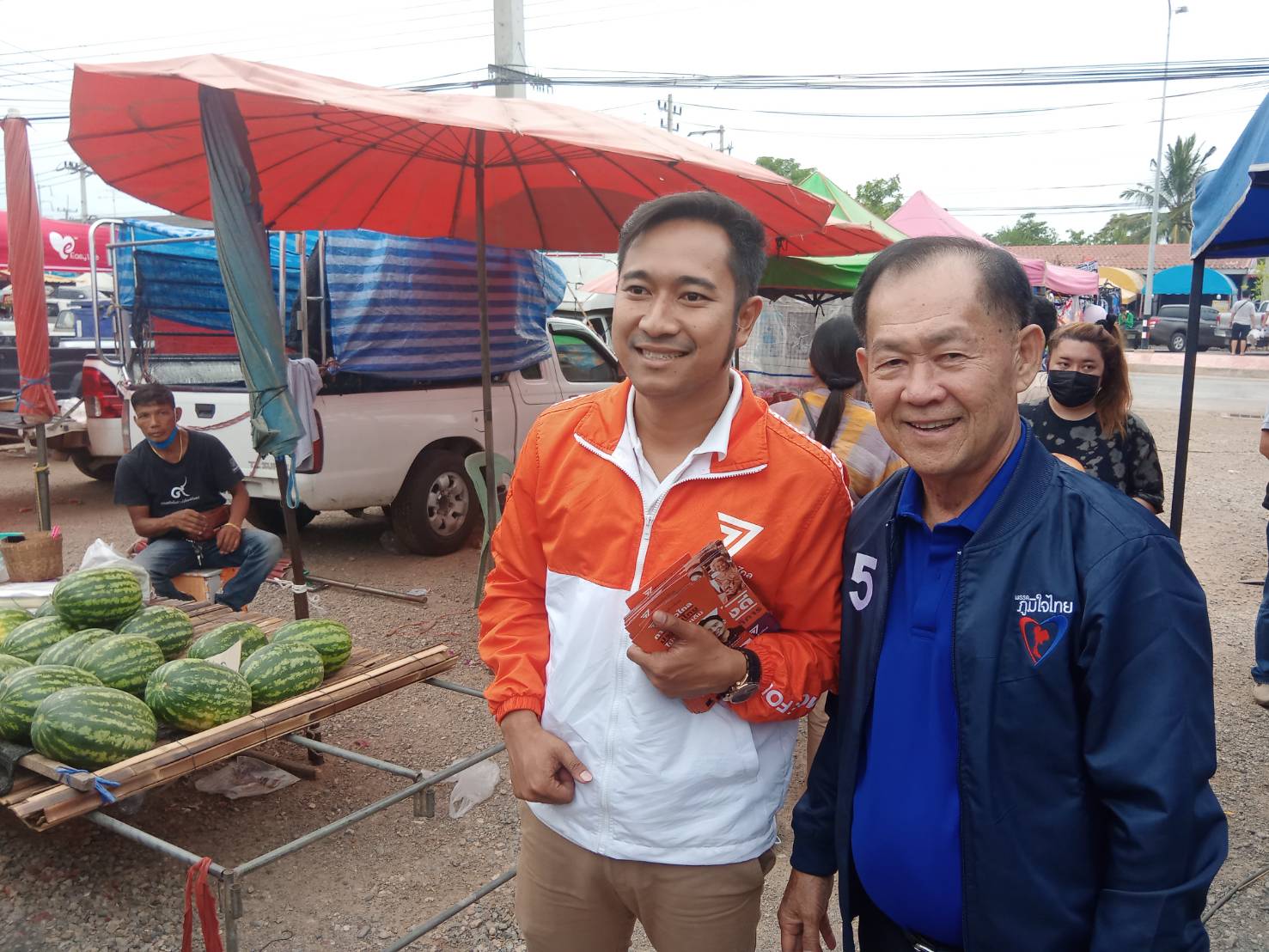 บรรยากาศทั่วไปในการหาเสียงของ นายสมเกียรติ วอนเพียร ผู้สมัคร ส.ส.กาญจนบุรี เขต 2 เบอร์ 5 พรรคภูมิใจไทยได้รับการตอบรับจากพ่อค้าแม่ค้าและประชาชนที่เดินจับจ่ายข้าวของจำนวนมาก และ นายสมเกียรติ วอนเพียร หรือกำนันฉอย ผู้สมัคร ส.ส.กาญจนบุรี เขต 2 เบอร์ 5 ได้กราบอวยพรขอให้พ่อค้าแม่ค้าพี่น้องประชาชนที่เดินทางมาจับจ่ายสินค้า ขอให้มีความสุข เฮงเฮง รวยรวย สร้างความยิ้มแย้มให้กับประชาชนทุกคนที่ได้คำอวยพร
