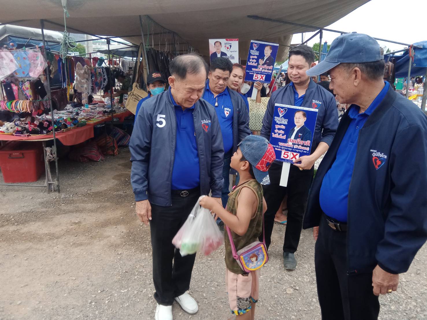กาญจนบุรี กำนันฉอย เขต 2 เบอร์ 5 ลงพื้นที่ตลาดนัดยางเกาะ แนะนำตัวกับพ่อค้าแม่ค้าชาวบ้าน พร้อมขอให้ “เฮงเฮง รวยรวย อย่าเจ็บ อย่าจน” โค้งสุดท้ายเลือกตั้ง ส.ส.