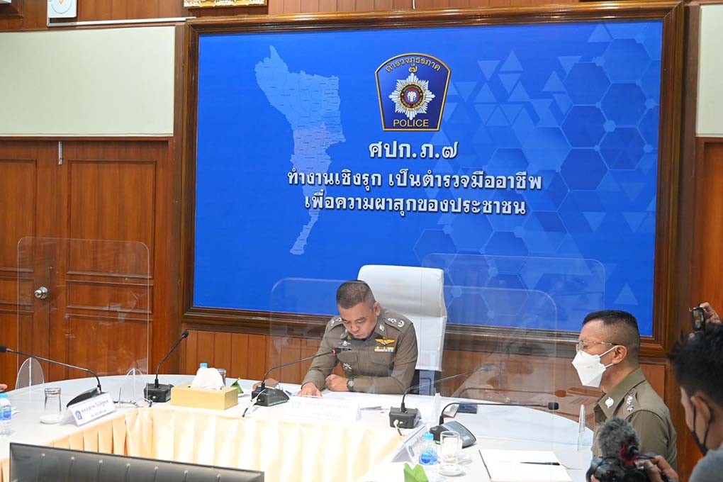 ณ ห้องประชุม ศปก.ภ.7 ชั้น 4 ตำรวจภูธรภาค 7 จัดแถลงข่าวปฏิบัติการปิดล้อมตรวจค้นเครือข่ายยาเสพติดตามโครงการ “เจดีย์พิทักษ์ @7″ ครั้งที่ 4ตามนโยบายของ พลเอก ประยุทธ์ จันทร์โอชา นายกรัฐมนตรี, พล.ต.อ.ดำรงศักดิ์ กิตติประภัสร์ ผบ.ตร. และ พล.ต.อ.ชินภัทร สารสิน รอง ผบ.ตร/ผอ.ศอ.ปส.ตร. ซึ่งกำหนดมาตรการ ปราบปรามและทำลายเครือข่ายยาเสพติด และยึดทรัพย์เครือข่ายกลุ่มผู้ค้ายาเสพติดในพื้นที่