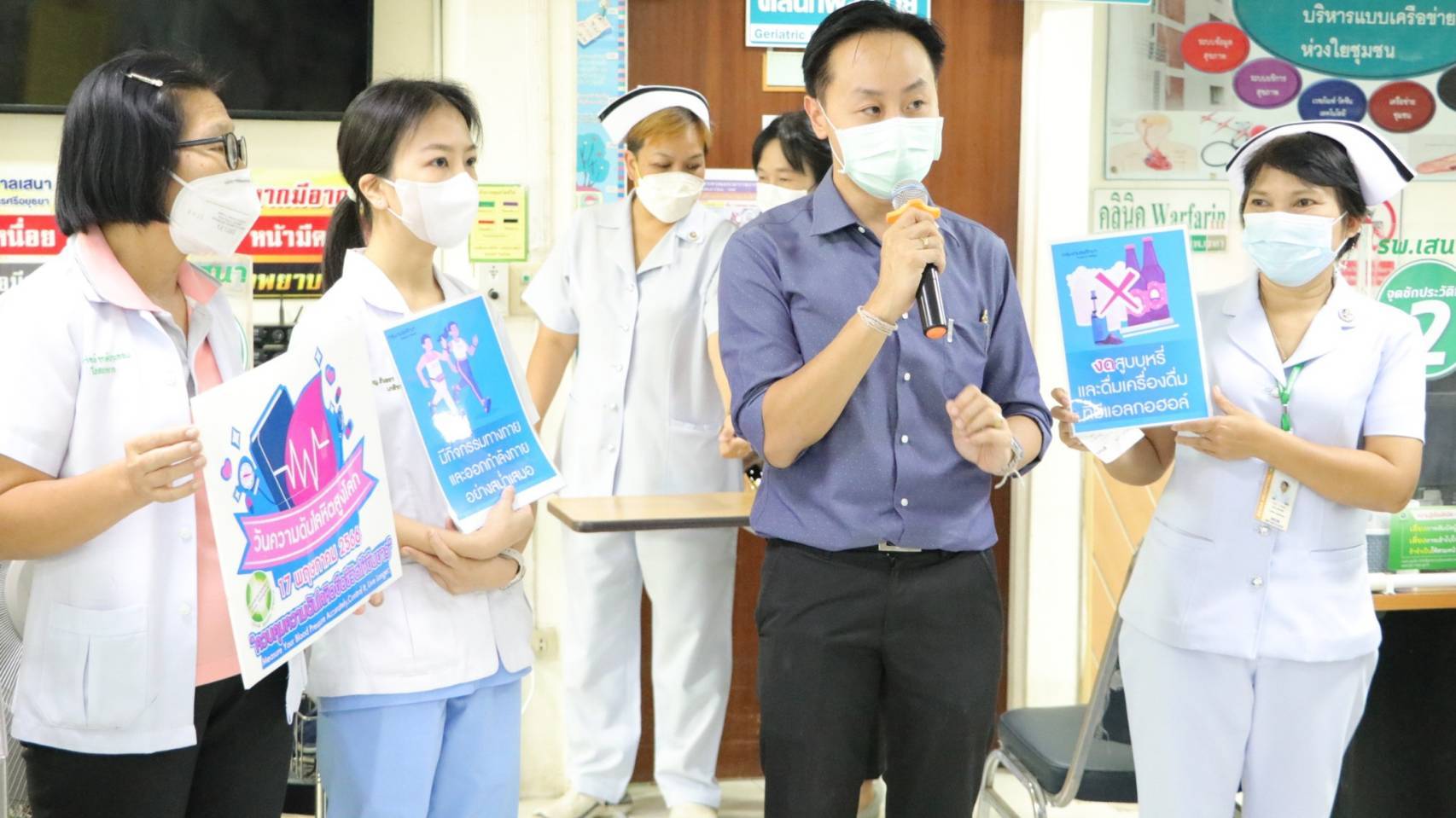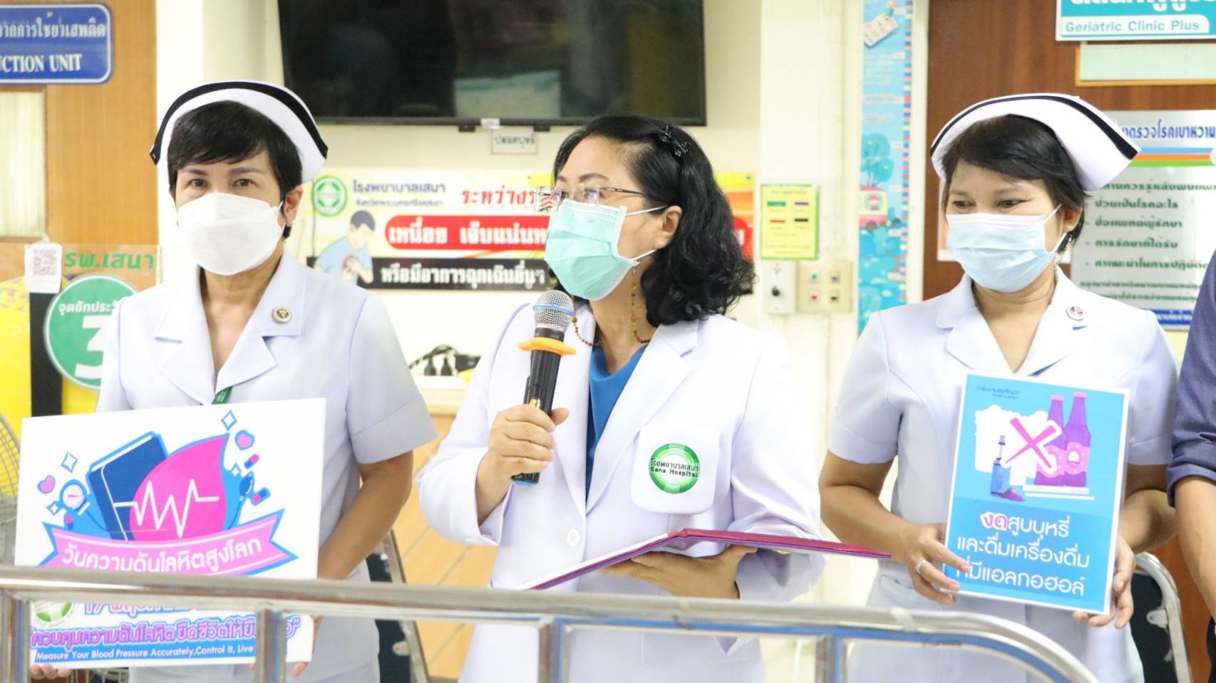 วันที่ 16 พฤษภาคม 2566 ที่ แผนกผู้ป่วยนอกอายุรกรรม โรงพยาบาลเสนา จังหวัดอยุธยา แพทย์หญิงชนิญญา พัฒนศักดิ์ภิญโญ ผู้อำนวยการโรงพยาบาลเสนา เป็นประธาน เปิดกิจกรรมวันความดันโลหิตสูงโลก ประจำปี 2566 ซึ่งตรงกับวันที่ 17 พฤษภาคม ของทุกปี โดยนายแพทย์ณิธัตธ ต่อบุณศุภชัย ประธานทีมดูแลผู้ป่วยอายุรกรรม พร้อมคณะ จัดกิจกรรมรณรงค์วันความดันโลหิตสูงโลก ภายใต้คำขวัญ “ควบคุมความดันโลหิต ยืดชีวิตให้ยืนยาว” สร้างความตระหนักถึงอันตราย ต่อโรคความดันโลหิตสูง การป้องกัน สาธิตการวัดความดันที่ถูกวิธี การรับประทานยาสม่ำเสมอ และการเลือกใช้เครื่องปรุงรสที่ให้ความเค็ม ในการปรุงอาหาร สำหรับผู้ป่วยโรคความดันโลหิตสูง