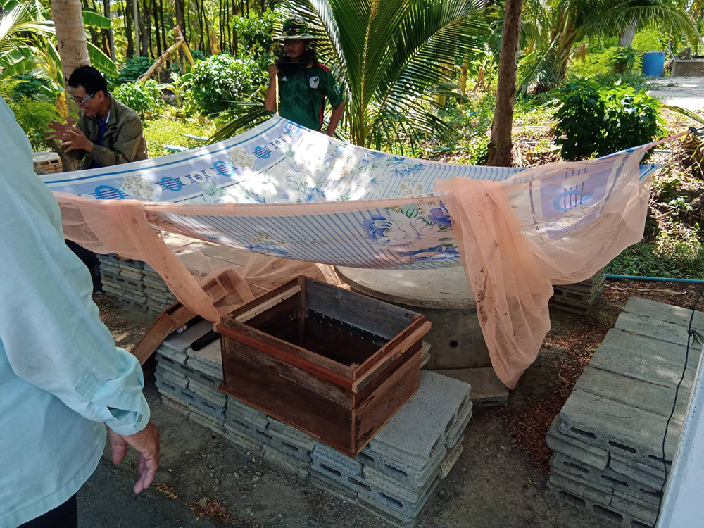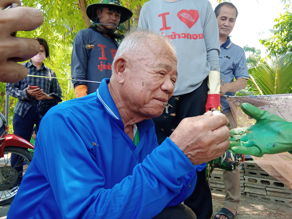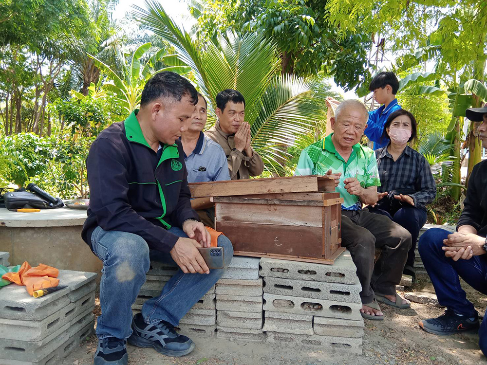กาญจนบุรี สาธิตการเพาะเลี้ยง-ย้ายผึ้งโพรงลงลัง ตำบลวังขนายอำเภอท่าม่วง จังหวัดกาญจนบุรี