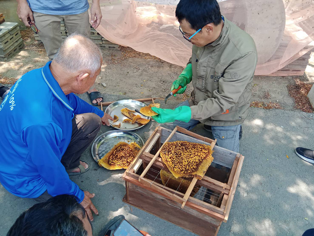 วันที่ 21 พฤษภาคม 2566 ที่บริเวณบริษัทสามัคคีพัฒนาจำกัด เลขที่ 120 หมู่ที่ 3 ตำบลวังขนาย อำเภอท่าม่วง จังหวัดกาญจนบุรี (โรงงานปุ๋ยสามัคคีพัฒนา) นายเสถียร มาเจริญรุ่งเรือง ประธานสภาเกษตรกรจังหวัดกาญจนบุรี พร้อมด้วยนายสยาม มาไมตรีจิต กรรมการผู้จัดการ บริษัทสามัคคีพัฒนา จำกัด นายไพวรรณ คันศร หัวหน้ากลุ่มสางเสริมพัฒนาเกษตรกร นายชยุติ โสไกร หัวหน้ากลุ่มส่งเสริมพัฒนาการผลิต สำนักงานเกษตรจังหวัดกาญจนบุรี และสมาชิกสภาเกษตรกร ประชาชนที่สนใจ ได้มาทำการศึกษาเรียนรู้ วิธีสาธิตการเพาะเลี้ยง-แยก-ย้ายผึ้งโพรงลงลัง และวิธีการเลี้ยงผึ้งอย่างถูกต้อง โดยมี นายอธิธัช บุญพลาย ผู้เชี่ยวชาญเรื่องการเลี้ยงผึ้ง มาทำการสาธิต เพื่อเป็นประโยชน์แก่ประชาชนทั่วไป และสามารถนำน้ำผึ้งมารับประทานเพื่อสุขภาพ ซึ่งจะเป็นประโยชน์อย่างมาก เนื่องจากเป็นการเพาะเลี้ยงผึ้งธรรมชาติ ที่หนึ่งปีสามารถเก็บเกี่ยวน้ำผึ้ง เดือนสี่เดือนห้า โดยการสาธิตผึ้งจะไม่ทำร้ายคน อย่างที่ทุกคนคิด ผู้ที่ได้ทำการศึกษาไม่ต้องเสียค่าใช้จ่ายใดๆ