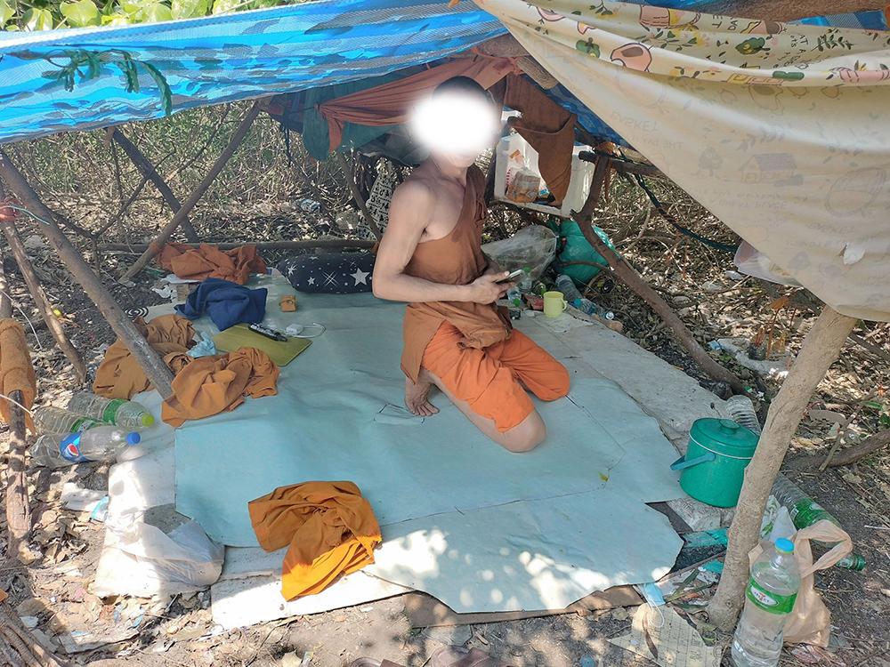 สมุทรปราการ ตม.จับกุมต่างด้าวหลบหนีเข้าเมืองแต่งกายคล้ายพระสงฆ์สร้างเพิงในป่ารกร้าง