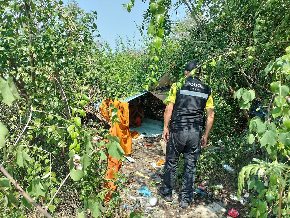เมื่อวันที่ 22 พ.ค. 2566 เจ้าหน้าที่ตรวจคนเข้าเมืองสมุทรปราการได้นำกำลังตรวจสอบต่างด้าวในพื้นที่ จากกรณีมีประชาชนให้เบาะแสร้องเรียนต่อเจ้าหน้าที่ตรวจคนเข้าเมืองสมุทรปราการว่า พบเห็นบุคคลต่างด้าวไม่ทราบสัญชาติหลายราย แต่งกายคล้ายพระสงฆ์ เมื่อเสร็จสิ้นการบิณฑบาตไม่ได้เดินทางกลับเข้าวัดแต่กลับเข้าไปมั่วสุมในป่ารกร้าง หลังตลาดนัดศิวะนคร ต.ท้ายบ้านใหม่ อ.เมือง จ.สมุทรปราการ จากการตรวจสอบบริเวณพื้นที่ดังกล่าวพบบุคคลต่างด้าว 3 รายสัญชาติกัมพูชา แต่งกายคล้ายพระสงฆ์ นุ่งห่มจีวร ไม่มีเอกสารหนังสือเดินทางแสดงต่อเจ้าหน้าที่ ซึ่งบริเวณโดยรอบเป็นป่ารกร้าง ไม่มีคนอยู่อาศัย มีการนำท่อนไม้ ผ้าใบมาสร้างเป็นเพิงพักอาศัย พร้อมอุปกรณ์จำเป็นในการดำรงชีพ และคาดว่าบริเวณดังกล่าวน่าจะมีต่างด้าวที่มีพฤติกรรมในลักษณะเดียวกันมากกว่า 3 รายแต่ไหวตัวหลบหนีไปก่อน ซึ่งจะได้ติดตามจับกุมตัวมาดำเนินคดีภายหลัง ทั้งนี้จึงได้จับกุมต่างด้าว 3 ราย ในข้อหา “เป็นบุคคลต่างด้าวเข้ามาอยู่ในราชอาณาจักรโดยไม่ได้รับอนุญาต” ดำเนินคดีตามกฎหมายต่อไป