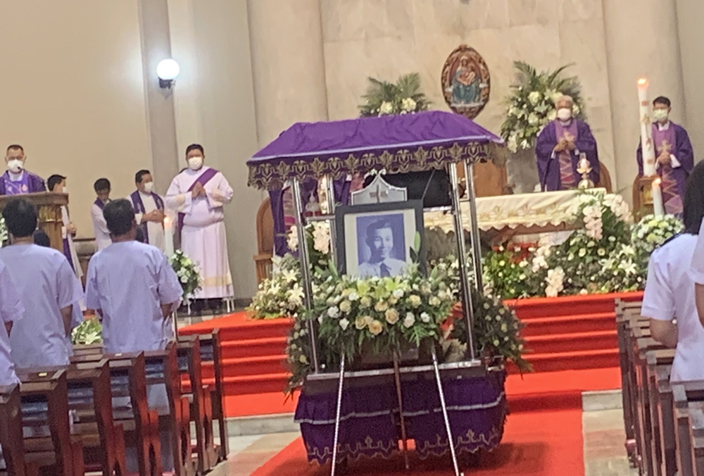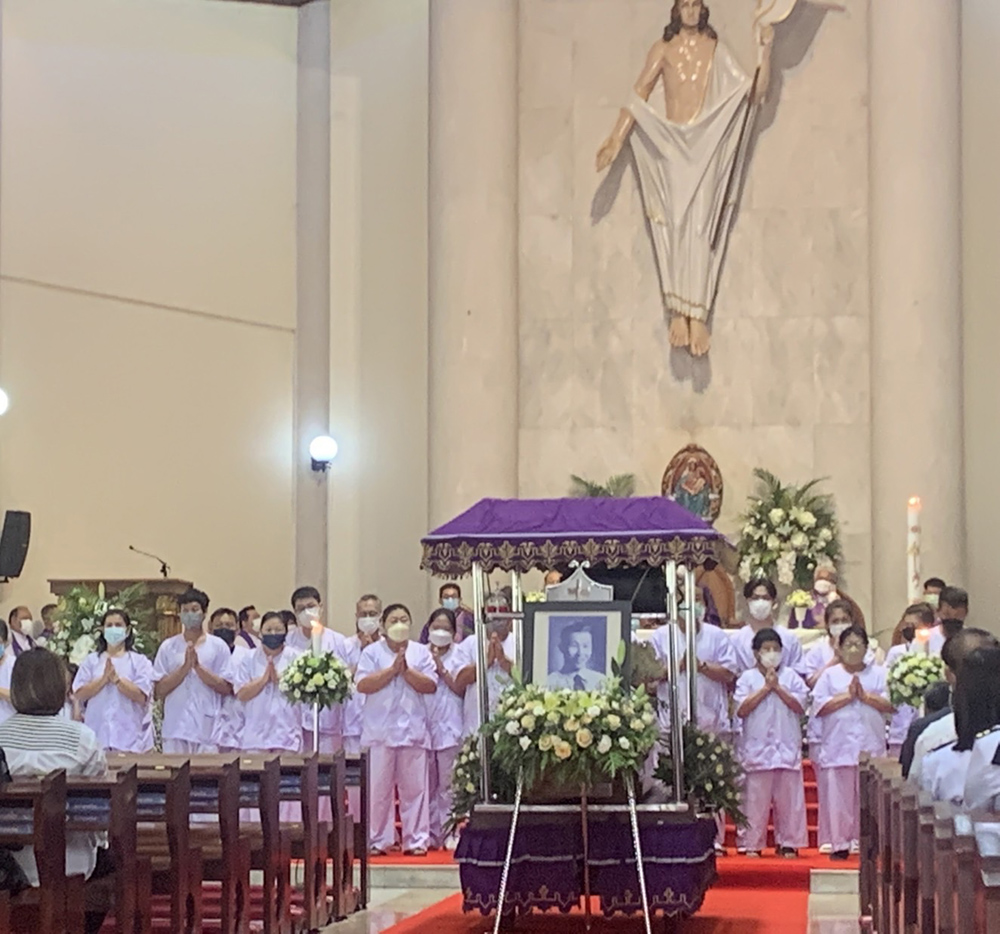 บรรยากาศในพิธีมิสซาศพ ก๋งเล็กผ้าขาวม้า ได้รับความเมตตา จาก บาทหลวง บัณฑิต ประจงกิจ ซึ่งเป็นคุณพ่อ เจ้าวัดนักบุญเปรโต พร้อมคณะร่วมประกอบพิธี มิสซาโดยมี ผู้บริหารท้องถิ่น นักปกครอง ญาติมิตรร่วม พิธีมิสซาไว้อาลัย อบอุ่นก่อนนำศพ ก๋งเล็กผ้าขาวม้า ไปบรรจุ ณ สุสานวัดนักบุญเปรโตร อ.สามพราน จ. นครปฐม
