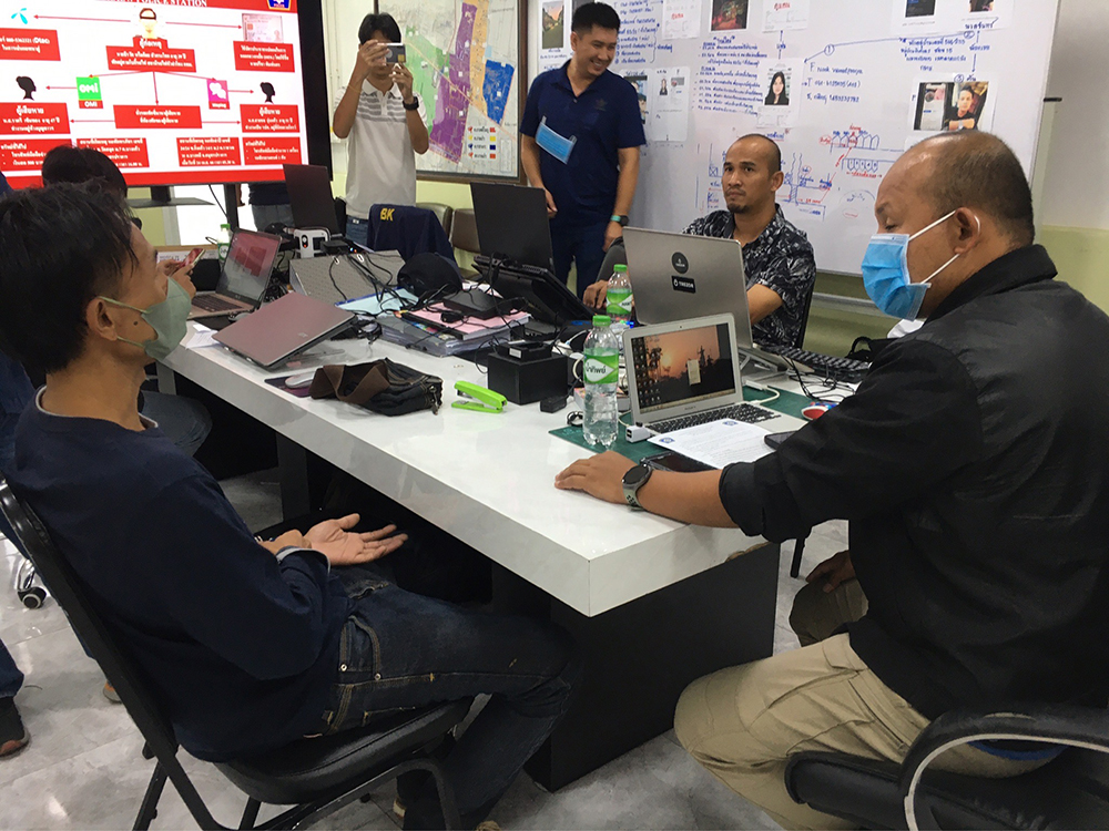 *****ด้านเจ้าหน้าที่ชุดสืบสวน สภ.บางแก้ว ลงพื้นที่ตรวจสอบกล้องวงจรปิด หอพักจำปี จนทราบตัวคนร้าย จึงซ้อนแผนให้ผู้เสียหายคนเดิมที่เคนร้ายเคยติดต่อปลอมเป็นเหยื่อคนอื่นเปลี่ยนรูปใหม่และสถานที่นัดเจอที่ใหม่ เมื่อถึงเวลานัดหมาย ผู้ก่อเหตุมาตามนัด เจ้าหน้าที่ตำรวจจึงเข้าจับกุมตัวได้ที่หน้าร้านสะดวกซื้อ ใกล้ทางเข้าม.ราม 2 บางแก้ว ต.บางแก้ว อ.บางพลี จ.สมุทรปราการ นำตัวมาสอบสวนที่ สภ.บางแก้ว