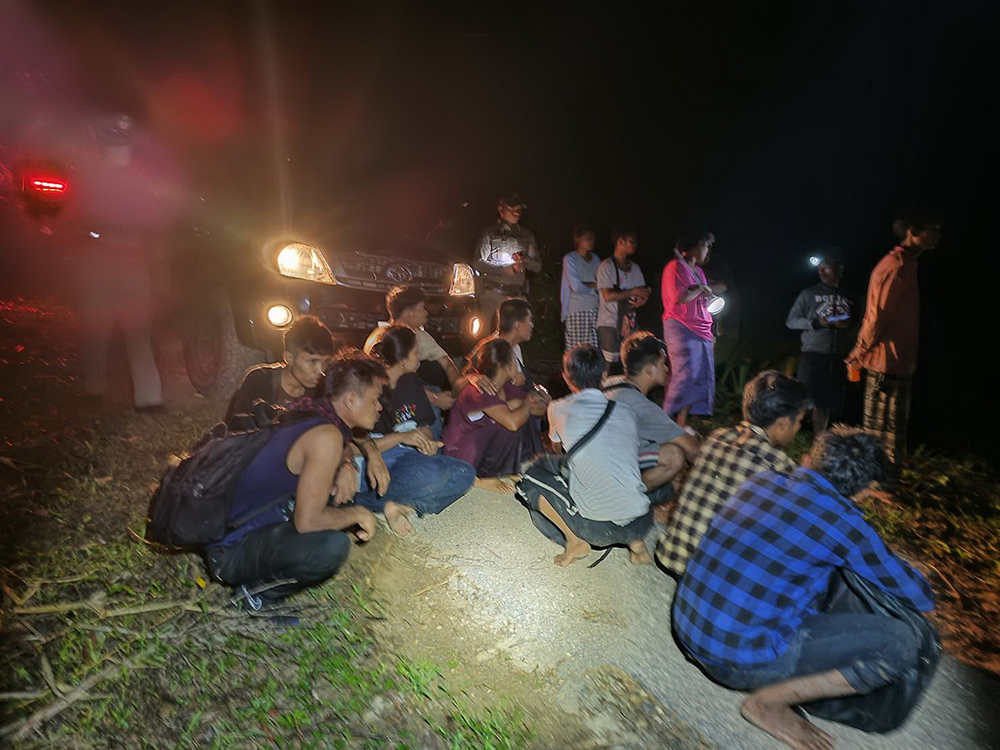 เมื่อเจ้าหน้าที่ไปถึงพบรถยนต์กระบะยี่ห้อโตโยต้า สีดำ หมายเลขทะเบียน 3ฒผ 7364 กรุงเทพฯ พลิกตะแคงข้างอยู่ที่คูน้ำ ซึ่งรถยนต์คันดังกล่าวเป็น 1 ใน 3 ของรถยนต์ที่ใช้ขนแรงงานต่างด้าวหลบหนีเข้าเมืองที่เจ้าหน้าที่สกัดจับก่อนหน้านี้ จากการตรวจสอบโดยรอบพบกลุ่มแรงงานต่างด้าวหลบซ่อนตัวอยู่ภายในป่าใกล้กับจุดเกิดเหตุ เจ้าหน้าที่จึงทำการปิดล้อมและสามารถจับกุมตัวได้ทั้งหมด 10 คน เป็นชาย 8 คน หญิง 2 คน