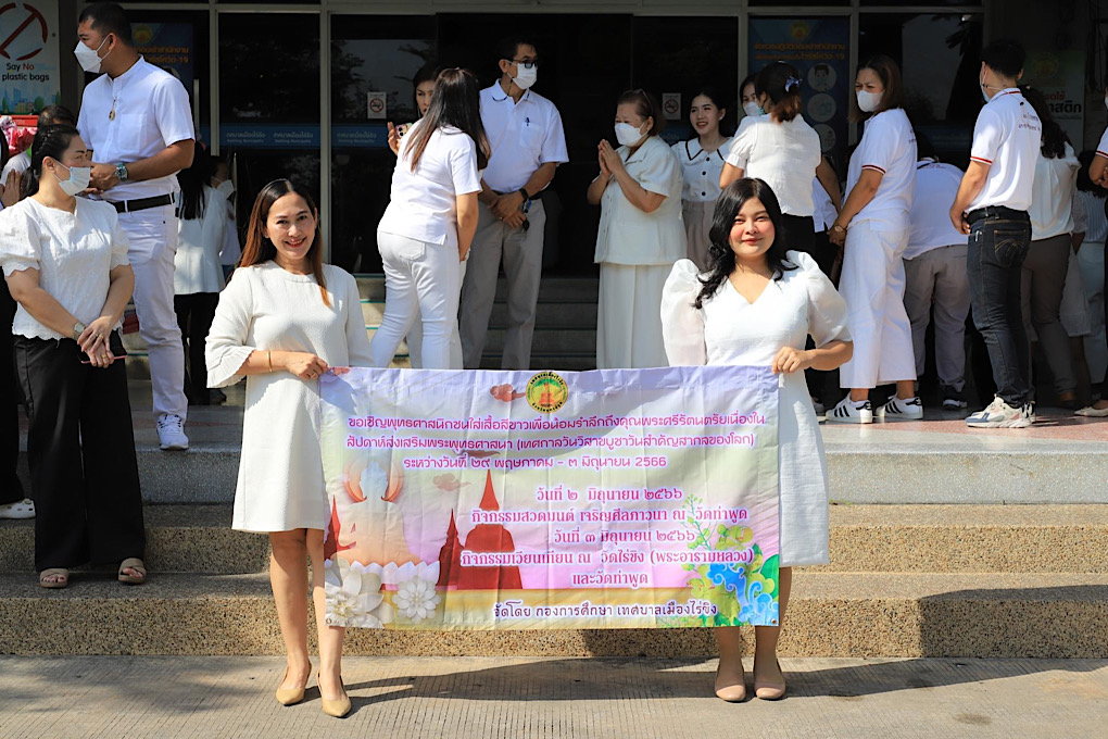 วันที่ 3 มิถุนายน 2566 เทศบาลเมืองไร่ขิงนำโดย นายจำรัส ตั้งตระกูลธรรม นายกเทศมนตรีเมืองไร่ขิง พร้อมคณะผู้บริหารเทศบาล ข้าราชการ พนักงาน และเจ้าหน้าที่เทศบาลเมืองไร่ขิง พร้อมใจแต่งกายชุดสีขาว เนื่องในสัปดาห์วันวิสาขบูชา วันสำคัญของโลก วันวิสาขบูชา เป็นวันสำคัญทางพุทธศาสนา กิจกรรมวันวิสาขบูชา วันหยุดราชการ