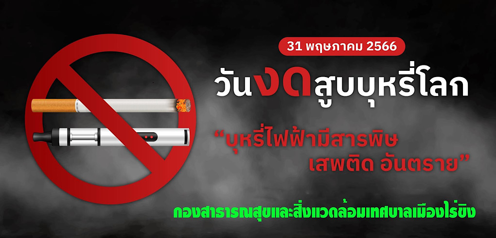 คำขวัญวันงดสูบบุหรี่โลก ปี 66 คือ “บุหรี่ไฟฟ้ามีสารพิษ เสพติต อันตราย” ณ พื้นที่เมืองไร่ขิง อ.สามพราน จ.นครปฐม