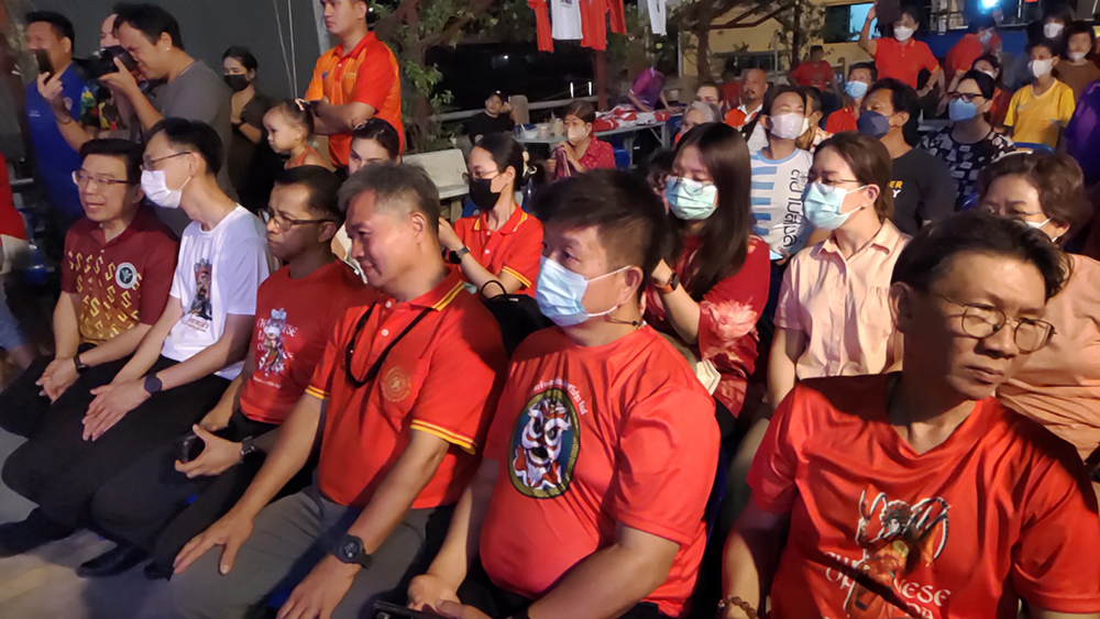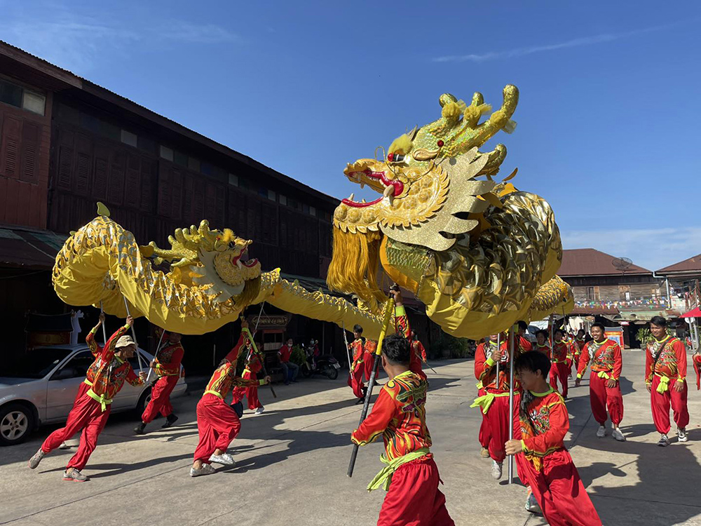 ช่วงเช้ามีพิธีอัญเชิญกระถางธูปเจ้าพ่อหลักเมือง เจ้าพ่อเขาตะเภา กระถางธูปจู่อุ่ยฮกซิ้งและเจ้าพ่อเขาสามยอด อายุนับ100ปี ที่อัญเชิญมาจากสาธารณรัฐประชาชนจีน พร้อมขบวนแห่สิงโต มังกรทอง และน้ำมนต์ศักดิ์สิทธิ์จากศาลเจ้าพ่อ ปะพรมให้กับชาวบ้านและร้านค้า เพื่อความเป็นสิริมงคล โดยคณะครูโรงเรียนวัดยาง ใกล้กับศาลเจ้าพ่อ ได้พาเด็กนักเรียนอนุบาล มาร่วมสืบสานประเพณีด้วยการ ชมขบวนแห่มังกรทอง สิงโต ผ่านหน้าโรงเรียน ซึ่งเด็กๆต่างตื่นตาตื่นใจสนุกสนานที่ได้เห็นขบวนแห่สิงโต มังกรทอง พร้อมกันนี้ชาวบ้านร้านตลาด คณะครู นักเรียนต่างรอรับน้ำมนต์ ศักดิ์สิทธิ์