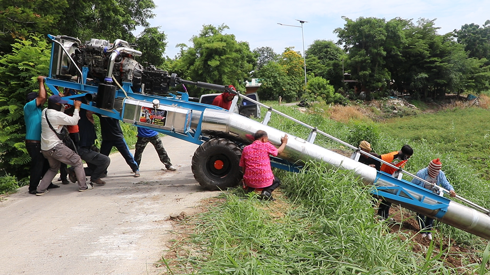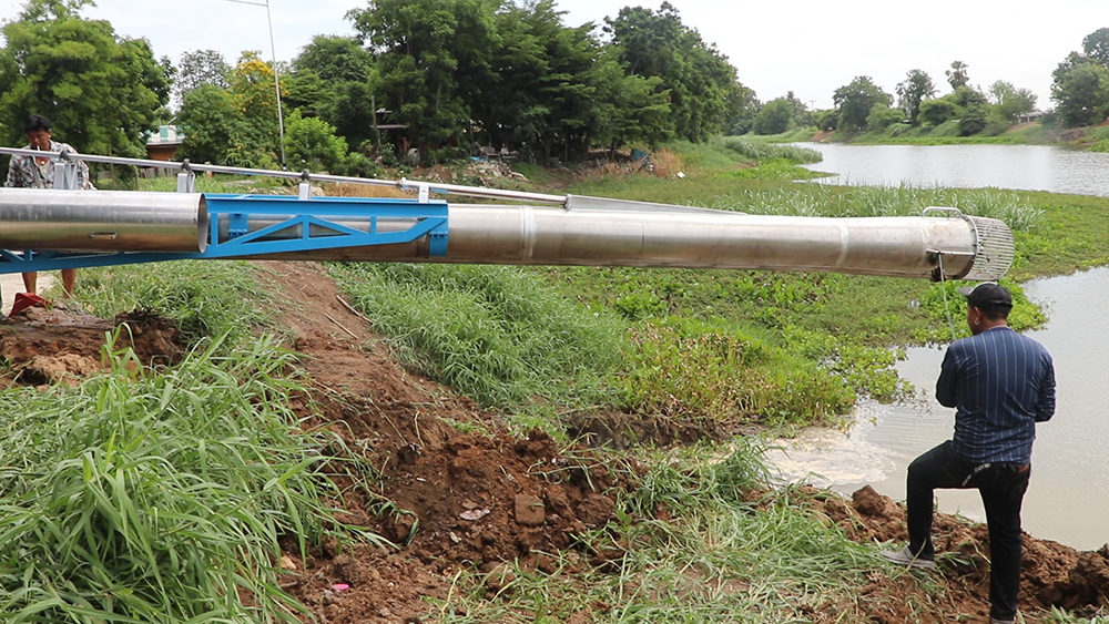 สิงห์บุรี อบต.พักทัน ใช้เครื่องเทอโบสูบน้ำซิ่งช่วยชีวิตปลาวัดห้วยเจริญสุข