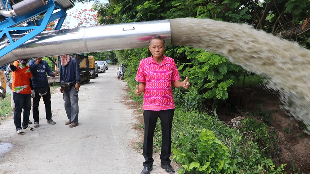 นายสายชล ฉิมพาลี นายกองค์การบริหารส่วนตำบลพักทัน อำเภอบางระจัน จังหวัดสิงห์บุรี พร้อมเจ้าหน้าที่ อบต.พักทันใช้แม๊คโครปรับหน้าดินแล้วใช้รถลากจูงนำเครื่องสูบน้ำซิ่งเครื่องเทอร์โบ 200 แรงม้า ขนาดท่อ 15 นิ้ว สูบน้ำจากฝั่งคลองระบาย 4 ซ้ายสุพรรณ 2 หลังวัดห้วยเจริญสุข เข้ามาในวัดเพื่อช่วยชีวิตปลาในวัดให้มีออกซิเจนหายใจปลาอยู่กันไม่แออัดมากเกินไปสามารถดำรงชีวิตอยู่ได้ ใช้เวลาประมาณ 2 ชั่วโมงก็เต็มสระขนาดความยาวประมาณ 50 เมตรกว้าง 20 เมตร น้ำนอกจากใช้เลี้ยงปลาที่วัดแล้วชาวบ้านยังสูบน้ำไปใช้ในการทำการเกษตรได้อีกด้วย