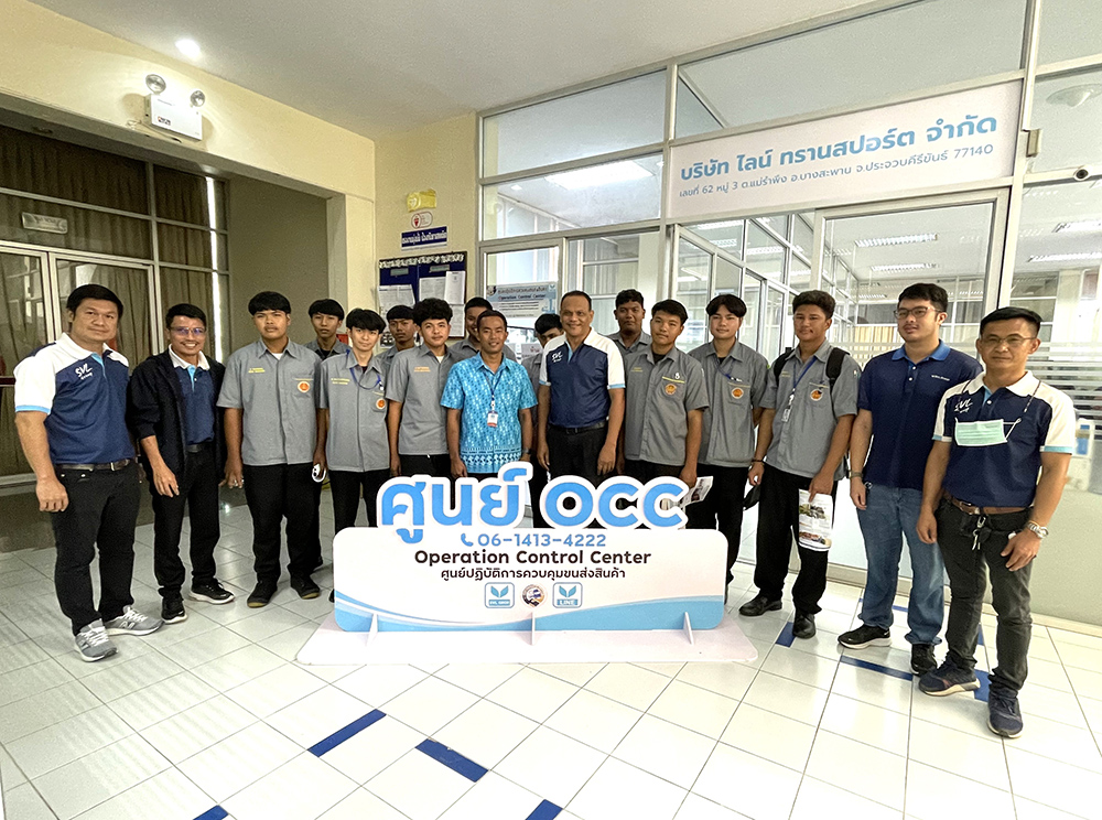 โดยนักศึกษา ได้มีโอกาสได้เรียนรู้งานจากของจริง เพื่อเสริมสร้างความเชี่ยวชาญในสาขาดังกล่าว พร้อมกันนี้คณะฯ ได้เยี่ยมชมศูนย์ปฏิบัติการควบคุมขนส่งสินค้า (OCC) เพื่อได้เห็นกระบวนการขนส่งสินค้า ที่มีการนำเทคโนโลยีมาเชื่อมต่อ ในการตรวจสอบการวิ่งรถขนส่งสินค้าแบบเรียลไทม์ ตอกย้ำความเป็นมืออาชีพและความเป็นมาตรฐานสากลของบริษัทฯ กิจกรรมจัดขึ้น ณ บริษัท ไลน์ ทรานสปอร์ต จำกัด อ.บางสะพาน จ.ประจวบฯ