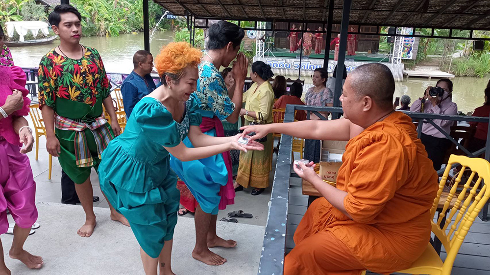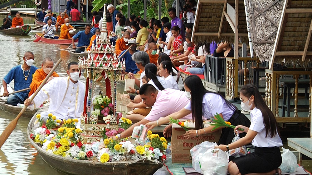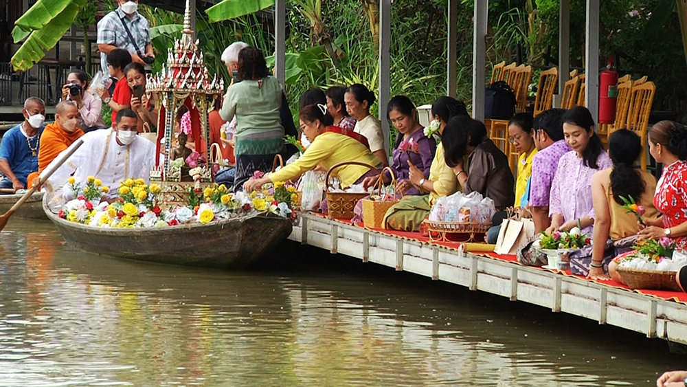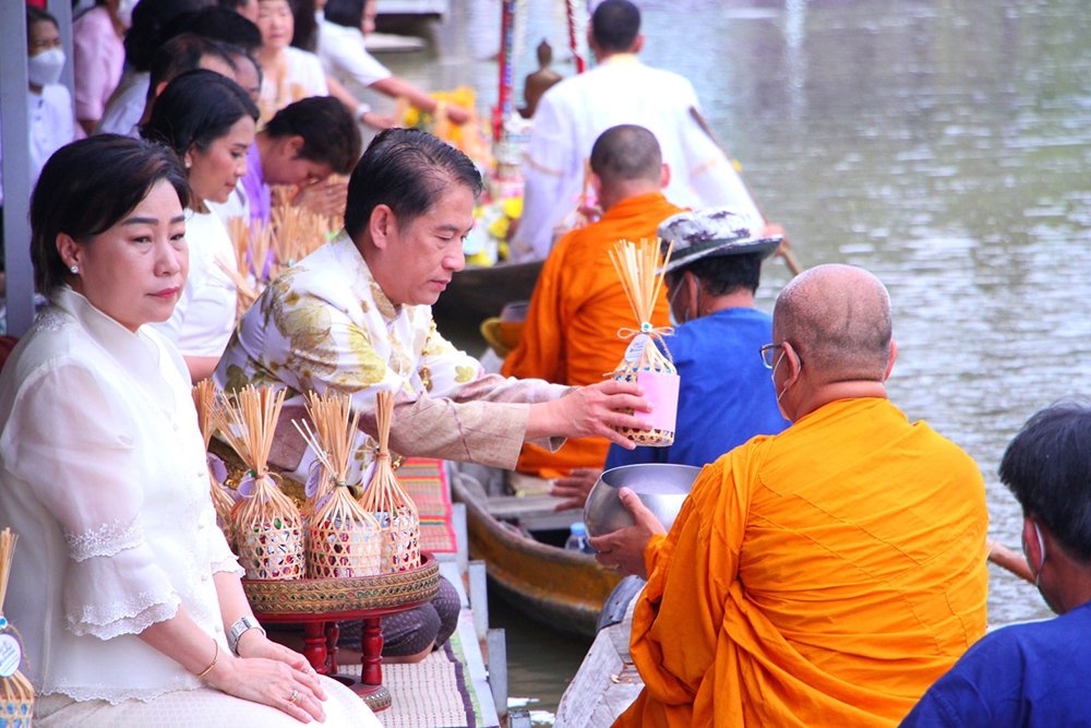 นางยุพา ทวีวัฒนะกิจบวร ปลัดกระทรวงวัฒนธรรม นายณัฐภัทร สุวรรณประทีป ผู้ว่าราชการจังหวัดสุพรรณบุรี น.ส.นิษฐกานต์ คุณวัชระกิจ วัฒนธรรมจังหวัดสุพรรณบุรีและคณะนักท่องเที่ยว ร่วมแต่งผ้าไทยตักบาตรทางน้ำ อนุรักษ์วัฒนธรรม นาวาภิกขาจาร ที่คนไทยในสมัยก่อน บ้านและวัดมักอยู่ติดริมแม่น้ำ พระสงฆ์ออกรับบิณฑบาตทางเรือ เป็นวิถีชีวิตริมน้ำที่เห็นได้บ่อย แต่เนื่องจากยุคสมัยมีการเปลี่ยนแปลงไป ทำให้ปัจจุบันจึงหาชม ได้ยาก