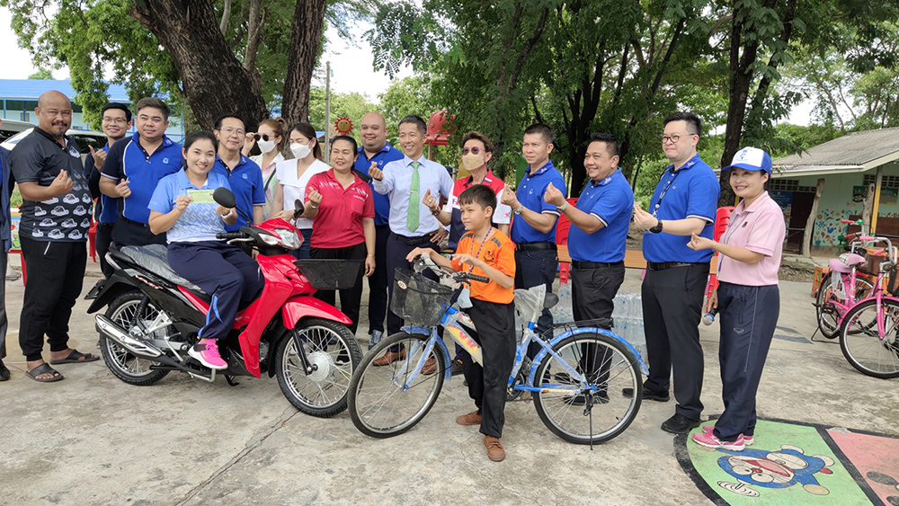 ที่โรงเรียนบ้านไผ่สีทอง ต.องค์พระ อ.ด่านช้าง จ.สุพรรณบุรี วันที่ 12 มิ.ย.2566 นายอาทิตย์ สุริยะพันธุ์พงศ์ เสี่ยหนุ่มแห่งศรีประจันต์วัฒนยนต์ และสามชุกวัฒนยนต์ ร่วมกับ คุณ ยูจิ โอคาดะ ผู้ช่วยประธานเจ้าหน้าที่บริหาร สายงานบริหารงานขายและการตลาด บริษัท ซัมมิทแคปปิตอลและผู้ใหญ่ใจดีจิตอาสา ได้ร่วมกันมอบคอมพิวเตอร์ 10 ชุด อุปกรณ์การเรียน ทุนการศึกษา รถจักรยานยนต์ 1 คันจักรยาน 5 คันและอุปกรณ์การกีฬา