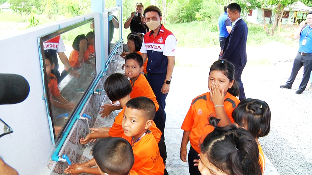 สุพรรณบุรี บริษัทศรีประจันต์วัฒยนต์ มอบคอมพิวเตอร์เครื่องกีฬาสร้างห้องสุขาให้นักเรียน