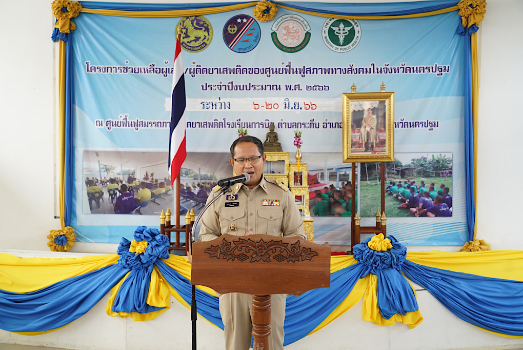 นครปฐม นายอำเภอสามพรานเปิดโครงการช่วยเหลือผู้เสพ ผู้ติดยาเสพติดของศูนย์ฟื้นฟูสภาพทางสังคม