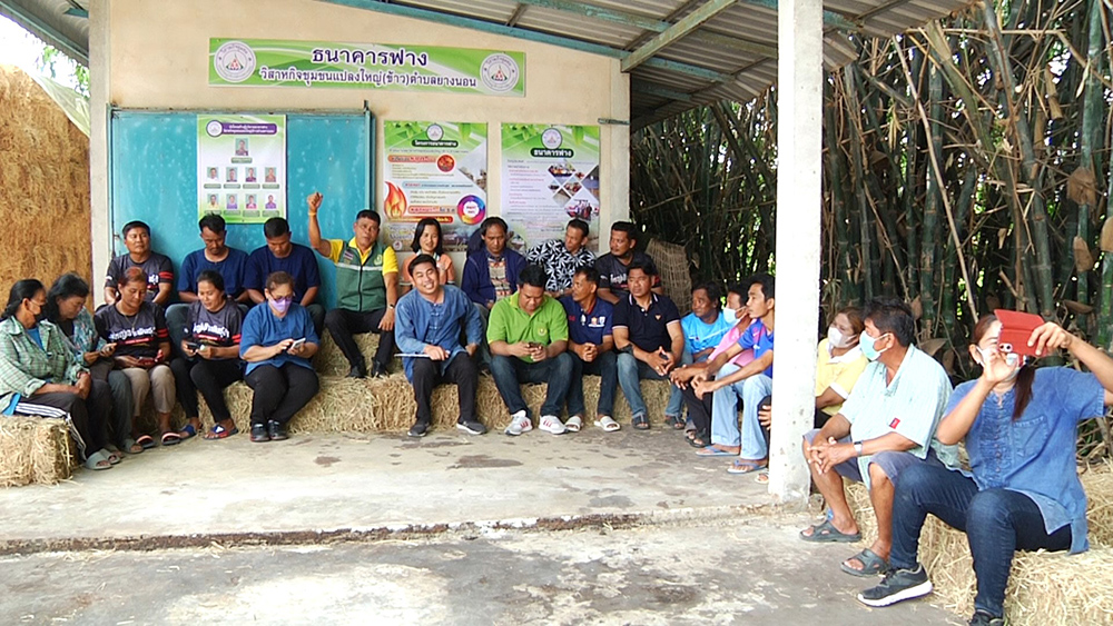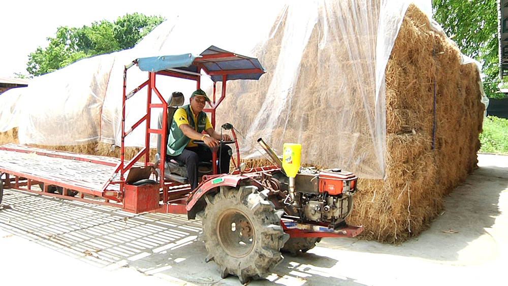 นอกจากนั้นฟางข้าววันนี้มีการแปรรูปส่งต่อเพิ่มมูลค่าไม่ว่าจะนำไปทำเห็ดฟาง ของกลุ่มเห็ดฟางในหลายอำเภอฟางส่วนหนึ่งยังเพิ่มความชื้นในดินไปคลุมแปลงผักเกษตรกรบางคนเก็บฟางไว้ใช้เองหรือซื้อฟางราคาถูกมาคลุมแปลง ช่วยลดการระเหยของน้ำเกษตรกรบางรายที่เก็บฟางไม่ได้เช่นพื้นที่นาไม่เรียบมีน้ำขังรถอัดฟางลงไม่ได้ก็ใช้วิธีการกระจายฟาง เสร็จก็ใช้ อีเอ็ม ที่หมักจากหน่อกล้วย และหมักจากฟางเข้าไปช่วยหมักใช้เวลาประมาณ 15 วันก็สามารถไถกลบได้นี่คือวิธีช่วยลดแก๊สมีเทน การทำนาต้องมองทุกมิติ ที่ช่วยอะไรสังคมได้บ้างเช่น ลด PM 2.5 ชุมชนได้ประโยชน์อะไร เช่นเรื่องใกล้ตัวอย่างอากาศเราดีไหม มีฝุ่นละอองไหม ซึ่งฟางส่วนใหญ่จะนำไปเป็นอาหารสัตว์ เลี้ยงโค ส่วนใหญ่จะส่งลูกทางภาคใต้ ช่วงภัยธรรมชาติน้ำท่วม ฟางจะมีราคาแพงถึงก้อนละ40บาททำให้ชาวบ้านมีรายได้เพิ่ม ซึ่งธนาคารแห่งนับว่ามีประโยชน์ต่อพี่น้องเกษตรกรเป็นอย่างมาก
