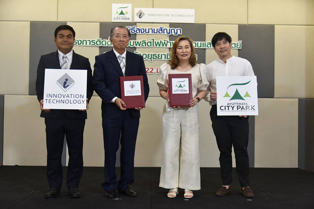 เมื่อวันที่ 22 มิถุนายน 2566 ณ ห้อง Meeting Room 3 ศูนย์การค้าอยุธยาซิตี้พาร์ค คุณปราณี ด่านชัยวิโรจน์ ประธานเจ้าหน้าที่บริหาร ศูนย์การค้าอยุธยาซิตี้พาร์ค คุณปภพ ด่านชัยวิโรจน์ ผู้ช่วยประธานเจ้าหน้าที่บริหาร ศูนย์การค้าอยุธยาซิตี้พาร์ค และนายแพทย์ชัยสิทธิ์ คุปต์วิวัฒน์ ประธานกรรมการบริหาร คุณศรายุทธ์ ขุนณรงค์ กรรมการผู้จัดการ บริษัท อินโนเวชั่น เทคโนโลยี จำกัด ร่วมพิธีลงนามสัญญา “โครงการติดตั้งระบบผลิตไฟฟ้าพลังงานแสงอาทิตย์ ระยะที่ 2 ศูนย์การค้าอยุธยาซิตี้พาร์ค” แบบติดตั้งบนหลังคาอาคาร (Solar Rooftop) ผลักดันให้เกิดการใช้พลังงานทดแทนที่เป็นมิตรต่อสิ่งแวดล้อม ควบคู่กับการสร้างความยั่งยืนในการดำเนินธุรกิจและชุมชน