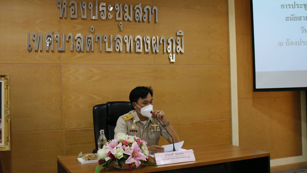 วันที่ 23มิถุนายน 2566 ที่ห้องประชุมสภาอาคารสำนักงานเทศบาลทองผาภูมิ จังหวัดกาญจนบุรี ชั้นที่ 3 นายเมธี สุดแสวง ประธานสภาเทศบาลตำบลทองผาภูมิ เปิดการประชุมสภาเทศบาลตำบลทองผาภูมิ สมัยสามัญ สมัยที่ 2 ประจำปี 2566 ณ ห้องประชุมสภาเทศบาลตำบลทองผาภูมิ โดยมีนายศราวุธ ศรีทันดร นายกเทศมนตรีตำบลทองผาภูมิ พร้อมด้วยสมาชิกสภาเทศบาลตำบลทองผาภูมิ เข้าร่วมประชุม มีวาระการประชุม นายกเทศมนตรีตำบลทองผาภูมิ แถลงนโยบายต่อสภาเทศบาล,การประกาศใช้แผนพัฒนาท้องถิ่น (พ.ศ.2566-2570) แก้ไขครั้งที่ 2/2566, การคัดเลือกคณะกรรมการพัฒนาเทศบาลตำบลทองผาภูมิ และการคัดเลือกคณะกรรมการติดตามและประเมินผลแผนพัฒนาเทศบาลตำบลทองผาภูมิ เนื่องจาก นายประเทศ บุญยงค์ นายก คนเดิมได้ลาออกไปลงสมัครสมาชิกสภาผู้แทนราษฎร โดย นายศราวุธ ศรีทันดร นายกเทศมนตรี แถลงต่อสภาเทศบาลตำบลทองผาภูมิ