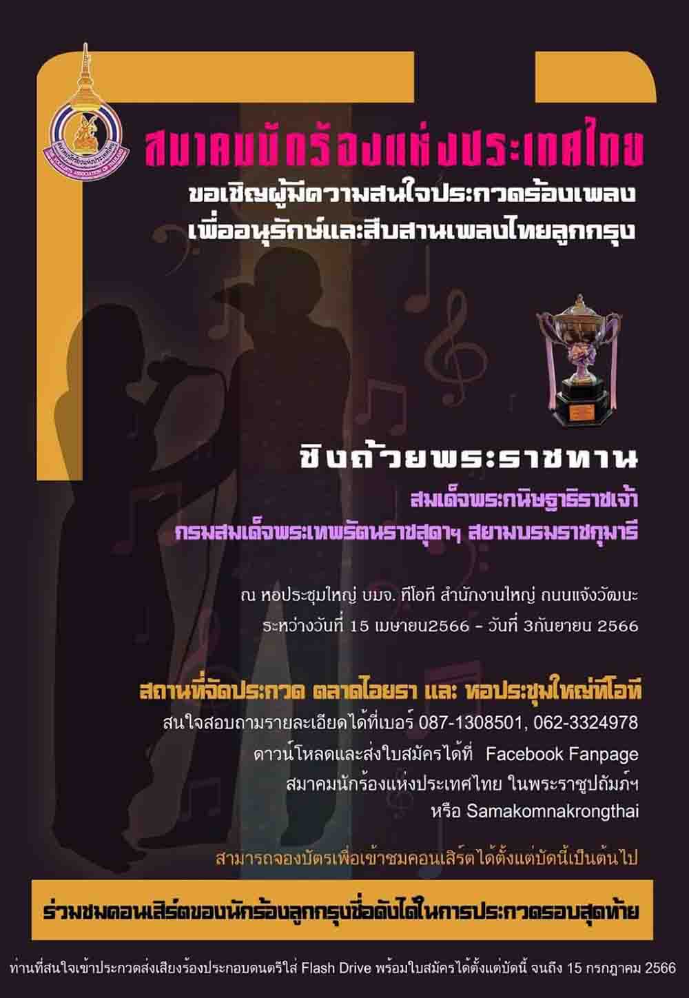 “สมาคมนักร้องแห่งประเทศไทย” เปิดเวที “ประกวดร้องเพลงสืบสานเพลงไทยลูกกรุง” ชิงถ้วยพระราชทาน