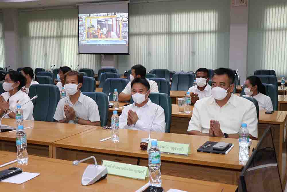 กาญจนบุรี บรรยากาศการเข้าร่วมพิธีเจริญพระพุทธมนต์ถวายเป็นพระกุศล และถวายพระพรแด่ สมเด็จพระอริยวงศาคตญาณ (อมฺพรมหาเถร) สมเด็จพระสังฆราช สกลมหาสังฆปริณายก เนื่องในโอกาสฉลองพระชนมายุ 8 รอบ 26 มิถุนายน 2566 ผ่านสื่ออิเล็กทรอนิกส์ (Zoom) ห้องประชุมแควใหญ่ ชั้น 5 ศาลากลางจังหวัดกาญจนบุรี ร้อยโท ทศพล ไชยโกมินทร์ ผู้ว่าราชการจังหวัดกาญจนบุรี พร้อมด้วย ว่าที่ร้อยตรี ศุภมงคล บูชาถ่ายเทศ รองผู้ว่าราชการจังหวัดกาญจนบุรี หัวหน้าส่วนราชการ ข้าราชการ และบุคลากรในจังหวัดกาญจนบุรี เข้าร่วมถ่ายทอดสดภาพบรรยากาศการเข้าร่วมพิธีเจริญพระพุทธมนต์ถวายเป็นพระกุศล และถวายพระพรแด่ สมเด็จพระอริยวงศาคตญาณ (อมฺพรมหาเถร) สมเด็จพระสังฆราช สกลมหาสังฆปริณายก เนื่องในโอกาสฉลองพระชนมายุ 8 รอบ 26 มิถุนายน 2566 ผ่านสื่ออิเล็กทรอนิกส์ (Zoom) โดยถ่ายทอดสดจาศูนย์กลางพิธีฯ ณ หอประชุมเฉลิมพระเกียรติฯ ชั้น2 วัดเขียนเขต พระอารามหลวง อำเภอธัญบุรี จังหวัดปทุมธานี โดยมี นายปรีชา เดชพันธุ์ หัวหน้าผู้ตรวจราชการกระทรวงมหาดไทย เป็นประธานในพิธีฯ