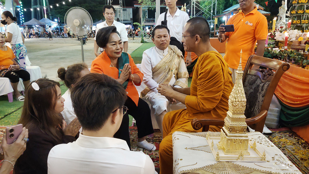 ที่วัดคันทด ตำบลท่าระหัด อำเภอเมือง จังหวัดสุพรรณบุรี 29 มิ.ย.2566 นางไพรัตน์ อ่อนดำ หรือป้าติ๋ว ชาว จ.สุพรรณบุรี เจ้าของธุรกิจ “น้ำพริกป้าติ๋ว” รามอินทรา กม.7 จัดพิธีบวงสรวงพระเจ้าทันใจ มหาจักรพรรดิ ฉลองพระเจ้าทันใจ มหาจักรพรรดิ ครบรอบ 8 ปี พิธีบวงสรวงองค์ปู่ศรีสุทโธนาคราช องค์แม่ย่าศรีปทุมมานาคิณี องค์ท้าวเวสสุวรรณ องค์พระพิฆเนศ ขอโชค ลาภ ซึ่งมีกลุ่มผู้ศรัทธาใจบุญ เพื่อนป้าติ๋ว ได้อัญเชิญพระธาตุพนมจำลอง ทองคำ น้ำหนักรวมฐาน 7 กิโลกรัม มูลค่ากว่า 14 ล้านบาท มาร่วมพิธี เพื่อความเป็นสิริมงคล โดยมีนางรำมารำถวายแก้บนและรำบวงสรวง ส่วนที่พลาดไม่ได้ ที่นักเสี่ยงโชคต่างรอคอยคือเลขหางประทัด ปรากฏว่าได้เลข 4374 952 58 นักเสี่ยงโชคต่างพากันใช้โทรศัพท์มือถือถ่ายเลขหางประทัดเก็บไว้นำไปเสี่ยงโชคกันในงวดนี้