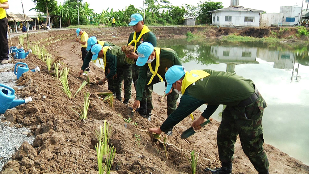 สุพรรณบุรี จิตอาสาพระราชทานกองพลทหารราบที่ 9 ร่วมปลูกหญ้าแฝกเฉลิมพระเกียรติ