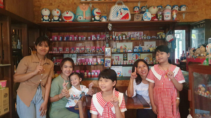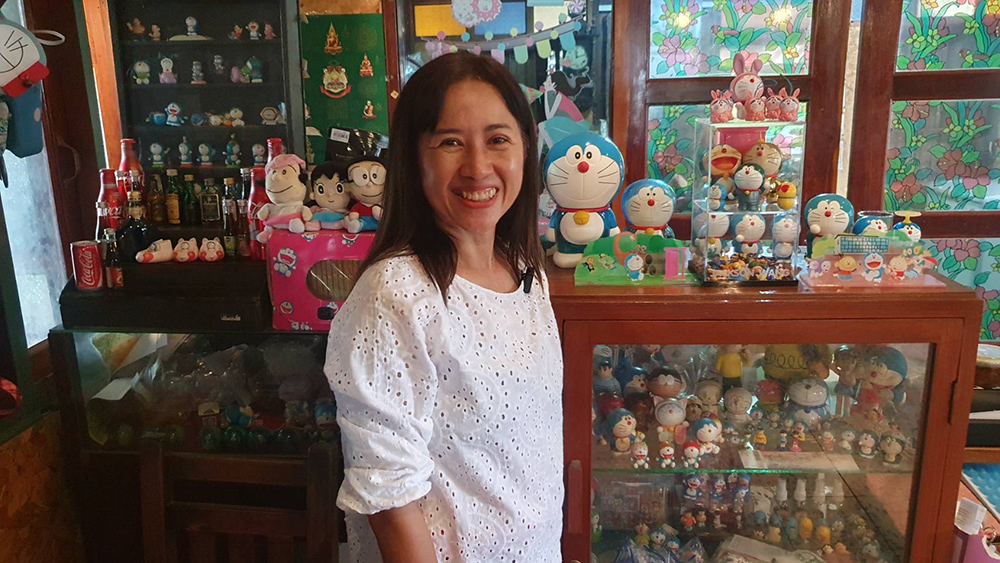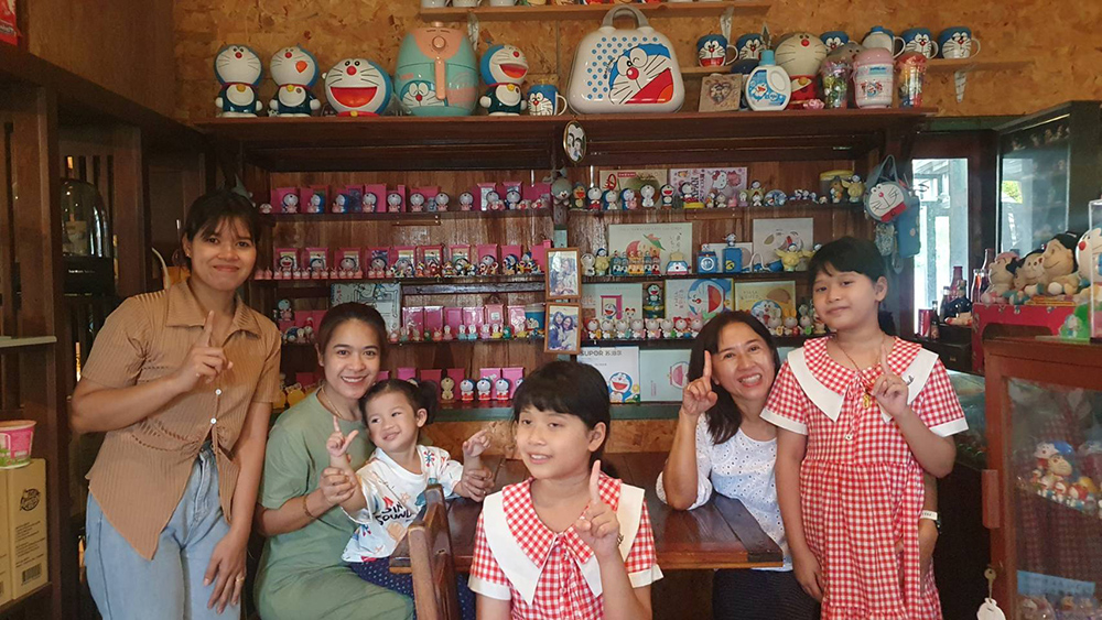 วันที่ 4 กรกฏาคม 2566 คุณสาริศา (คุณปุ้ม) เสาวมล อายุ 54 ปีเจ้าของร้านลูกไม้กาแฟสดปากทางเข้าตลาดทองผาภูมิ จังหวัดกาญจนบุรี เปิดเผยว่า สำหรับร้านลูกไม้กาแฟสด เปิดมาเข้าสู่ปีที่ 15 เป็นแนวคิดของเจ้าของร้านที่จะเนรมิตบ้านของตัวเองให้เป็นร้านกาแฟเล็กๆ และก็ได้นำของเก็บสะสมสุดรักก็คือ เจ้าแมวอ้วนสีฟ้า หรือโดเรม่อน มาเป็นส่วนประกอบตกแต่งของร้านนี้ ซึ่งก็อยากให้ทุกๆคนได้มาเห็นความน่ารัก ภายในร้านที่มีมากกว่า 10,000 ตัว นับมูลค่าเป็นเงินก็ไม่รู้ที่จะคำนวณออกมาได้ ส่วนเมนูของทางร้านก็เป็นหลักๆเป็นเครื่องดื่ม เช่น กาแฟสด โกโก้ เมนูเครื่องดื่มต่างๆอีกเกือบ 100 เมนู และมีอีกหลากหลายมากมายกับเมนูอาหารคาว ซึ่งก็จะเป็นก๋วยจั๊บญวนที่ใช้วัตถุดิบส่งตรงจากจังหวัดอุบลราชธานี แบบ 100% ส่วนด้านอาหารของคาวก็จะเน้นเป็นอาหารจานเดียว ก็คือ จำพวกผัดกระเพรา