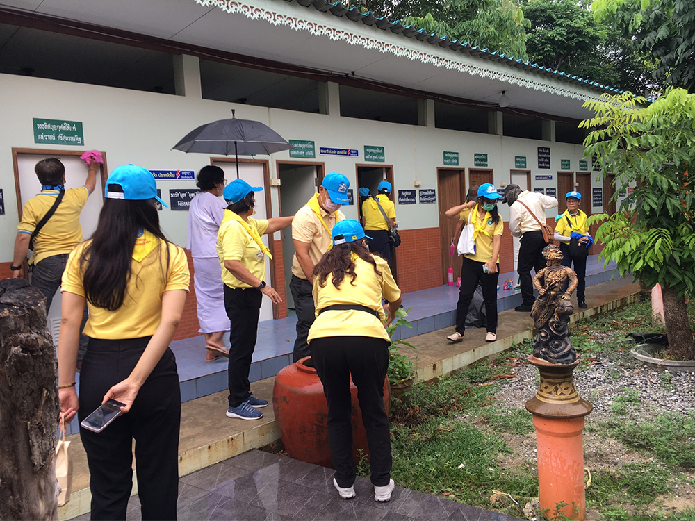 *****จากนั้น ได้นำกลุ่มจิตอาสา กว่า 200 คน ทำกิจกรรม เราทำความดี ด้วยหัวใจ ด้วยการทำความสะอาด กวาดพื้นถนน และการทำความสะอาดห้องสุขาสาธารณะ ภายในวัดพุทธภาวนาราม เพื่อแสดงออกถึงความจงรักภักดีและน้อมสำนึกในพระมหากรุณาธิคุณ อีกทั้ง ยังเป็นการสร้างความตระหนักและการมีส่วนร่วมในการรักษาดูแลทำความสะอาดภายในศาสนสถาน จุดบริการห้องน้ำสาธารณะที่ประชาชนมาใช้บริการ รวมถึงบริเวณพื้นที่ต่างๆ ภายในวัด ซึ่งถือเป็นการทำนุบำรุงศาสนสถานให้พระภิกษุสงฆ์ปฏิบัติศาสนกิจด้วยความสะดวก และพุทธศาสนิกชนที่เข้ามาทำบุญปฏิบัติธรรมหรือร่วมกิจกรรมประเพณีทางศาสนาในวัดได้อย่างสบายใจและมีสุขภาพอนามัยที่ดี