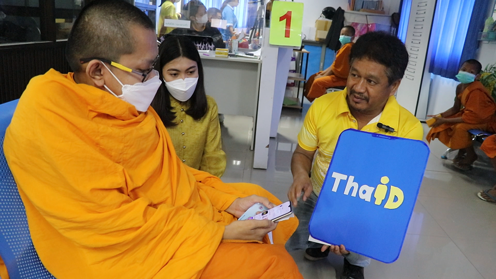 นายปัญญา ใช้เฮ็ง นายอำเภอเมืองสิงห์บุรี พร้อม นางสาวกัลยกร ศรีชุมจันทร์ ปลัดอำเภองานสำนักงานอำเภอ และนายมานะ นาถโสภา กำนันม่วงหมู่ ร่วมกันรณรงค์ ประชาสัมพันธ์ สร้างการรับรู้และเชิญชวนประชาชน พระภิกษุและสามเณร ที่มาใช้บริการงานทะเบียน ณ ที่ว่าการอำเภอเมืองสิงห์บุรี โดยการให้คำแนะนำดาวโหลด แล้วลงทะเบียนเข้าใช้ Application ThaiD พร้อมทั้งวิธีการยืนยันตัวตน ใช้รหัสผ่านที่ตั้งไว้ จำนวน 8 หลักโดยแอปพลิเคชันดังกล่าว ใช้สำหรับยืนยันตัวตน หรือใช้แสดงแทนบัตรประจำตัวประชาชนและคัดสำเนาทะเบียนบ้าน แจ้งย้ายทะเบียนบ้านออนไลน์ ข้อมูลการฉีดวัคซีน โควิด-19 ใช้ในการทำธุรกรรม-รับบริการ กับหน่วยงานภาครัฐ ภาคเอกชนต่างๆ เพื่อสนองตอบความต้องการของผู้ใช้ในด้านความสะดวก-สบาย ประหยัดเวลา-ค่าใช้จ่าย รวดเร็ว และอยู่บนพื้นฐานความปลอดภัยของข้อมูลส่วนบุคคลเป็นสำคัญ อีกทั้งเป็นการสนับสนุนการพัฒนาเศรษฐกิจดิจิทัล สามารถอำนวยความสะดวกและสนองตอบความต้องการของประชาชนในการติดต่อกับราชการ โดยไม่ต้องเดินทางไปที่ว่าการอำเภอ