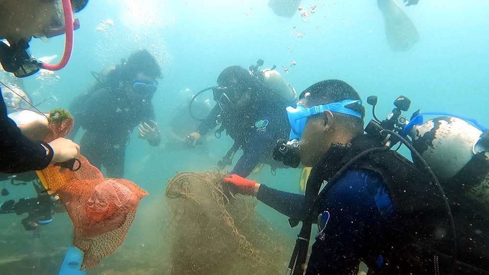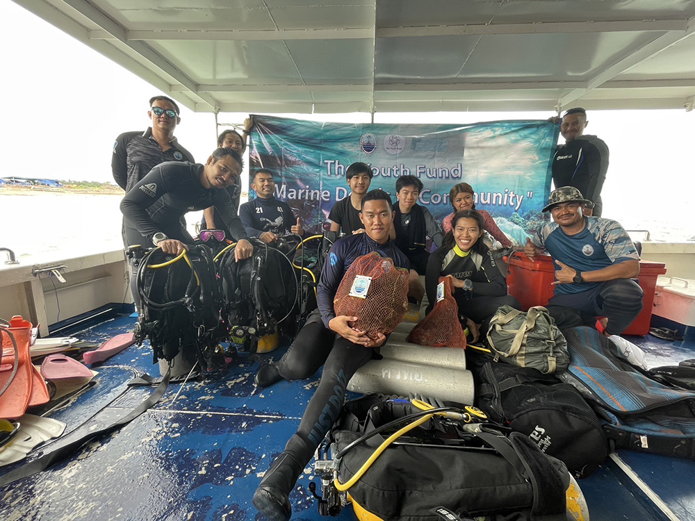 นายกฤษฏ์ ภักดีจิตต์ หัวหน้าโครงการ “ขยะทะเลสู่สมบัติของชุมชน” นำเยาวชนสมาคม The Youth Fund ลงพื้นที่รณรงค์ดำน้ำเก็บซากอวนและขยะใต้ท้องทะเล ณ บริเวณหมู่เกาะมันใน อำเภอแกลง จังหวัดระยอง พร้อมทั้งลงพื้นที่ดำเนินการสร้าง “ธนาคารขยะ” เพื่อรับซื้อขยะจากพื้นที่ชุมชนชายฝั่งจังหวัดระยอง ณ พื้นที่บริเวณพื้นที่ชุมชนชายฝั่งทะเลแหลมรุ่งเรือง ตำบลปากน้ำระยอง อำเภอเมืองระยอง จังหวัดระยอง เพื่อให้ธนาคารขยะแห่งนี้ เป็นแหล่งรับซื้อขยะพลาสติกเพื่อนำกลับมาใช้ประโยชน์ใหม่ อีกทั้งเป็นแหล่งรับซื้อขยะทะเลที่มาจากเศษอวนแหจากการทำประมง ตลอดจนเป็นแหล่งเรียนรู้และส่งเสริมเศรษฐกิจหมุนเวียนในชุมชน อันจะนำมาซึ่งความตระหนักรู้ถึงปัญหาขยะทะเลที่ส่งผลกระทบต่อระบบนิเวศทางทะเลและสัตว์ทะเลหายาก เพื่อนำไปสู่การแก้ปัญหาชายฝั่งอย่างยั่งยืน โดยในการดำเนินการได้รับการสนับสนุนจากกรมทรัพยากรทางทะเลและชายฝั่ง (ทช.) ตลอดจนมีเครือข่ายความร่วมมือจากอาสาสมัครพิทักษ์ทะเล และชุมชนชายฝั่งทะเล ร่วมกิจกรรมกว่า 30 คน