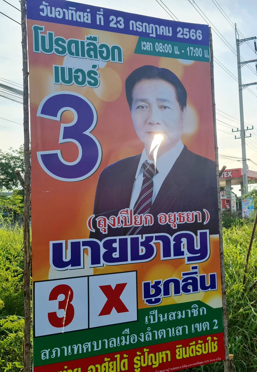 โดนมือดี กรีดป้ายหาเสียง ผู้สมัคร สท.หมายเลข.3