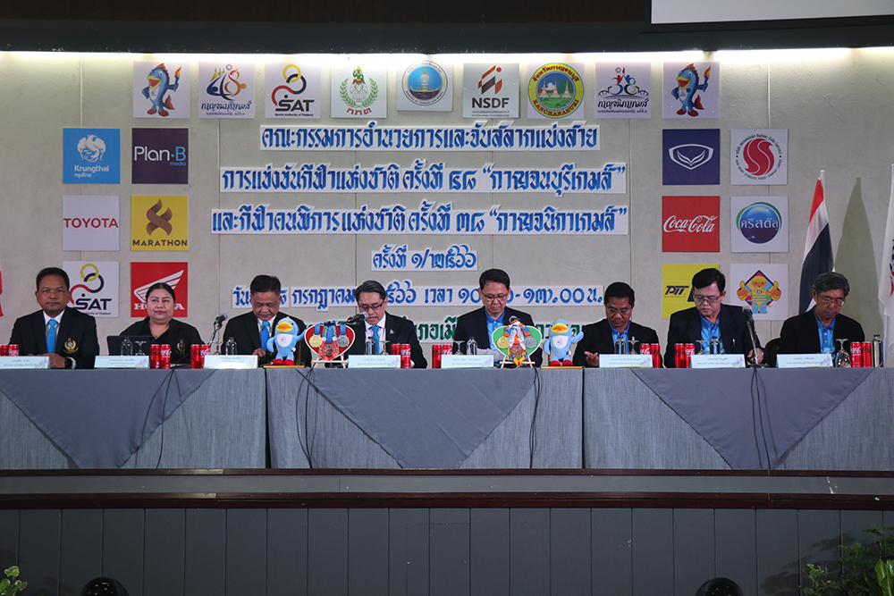 วันที่ 18 กรกฎาคม 2566 ที่ห้องประชุม Convention Hall ชั้น1 โรงแรมราชศุภมิตร (RS. Hotel) จังหวัดกาญจนบุรี ดร.ก้องศักดิ์ ยอดมณี ผู้ว่าการการกีฬาแห่งประเทศไทย เป็นประธานในการประชุมคณะกรรมการอำนวยการและจับสลากแบ่งสายการจัดการแข่งขันกีฬาแห่งชาติ ครั้งที่ 48 “กาญจนบุรีเกมส์” และ การแข่งขันกีฬาคนพิการแห่งชาติ ครั้งที่ 38 “กาญจนิกาเกมส์” ครั้งที่ 1/2566 โดยมี ร้อยโท ทศพล ไชยโกมินทร์ ผู้ว่าราชการจังหวัดกาญจนบุรี ร่วมประชุมฯ พร้อมด้วย ว่าที่ร้อยตรี ศุภมงคล บูชาถ่ายเทศ รองผู้ว่าราชการจังหวัดกาญจนบุรี นายประชุม บุญเทียม รองผู้ว่าการการกีฬาแห่งประเทศไทย ฝ่ายกีฬาเป็นเลิศและวิทยาศาสตร์การกีฬา นางโปรดปราน สมานมิตร รองผู้ว่าการการกีฬาแห่งประเทศไทย ฝ่ายส่งเสริมกีฬา พล.อ.ดร.ชินวัฒน์ แม้นเดช นายกสมาคมกีฬาแห่งจังหวัดกาญจนบุรี นายปรีชา ลาลุน ผู้อำนวยการฝ่ายพัฒนากีฬาเป็นเลิศ นายอนันท์ ดิษฐศิริ ปลัดองค์การบริหารส่วนจังหวัดกาญจนบุรี นายอุดม เหลืองสด รองนายกเทศมนตรีเมืองกาญจนบุรี คณะกรรมการดำเนินการจัดการแข่งขันฯ และผู้เกี่ยวข้อง ร่วมประชุมฯ