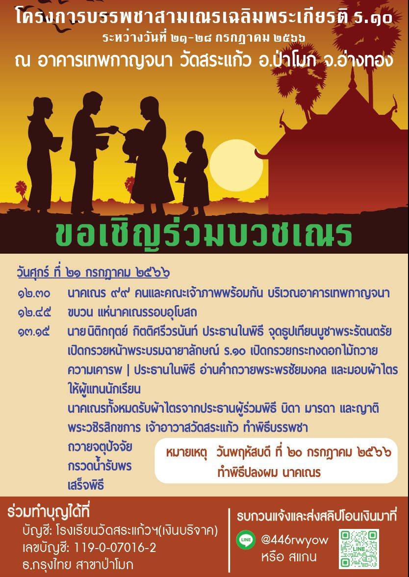 ล่าสุดอ.นิติกฤตย๋ ก็ได้เป็นประธานงาน โครงการบรรพชาสามเณรเฉลิมพระเกียรติ ร.10 วัดสระแก้ว จงอ่างทอง จึงเรียนเชิญทุกท่านมาร่วมทำบุญ ในวันที่ 21 ก.ค.นี้หรือร่วมบุญได้ที่ บัญชีโรงเรียนวัดสระแก้วฯ(เงินบริจาค) เลขบัญชี 1190070162 ธนาคาร กรุงไทย สาขาป่าโมก