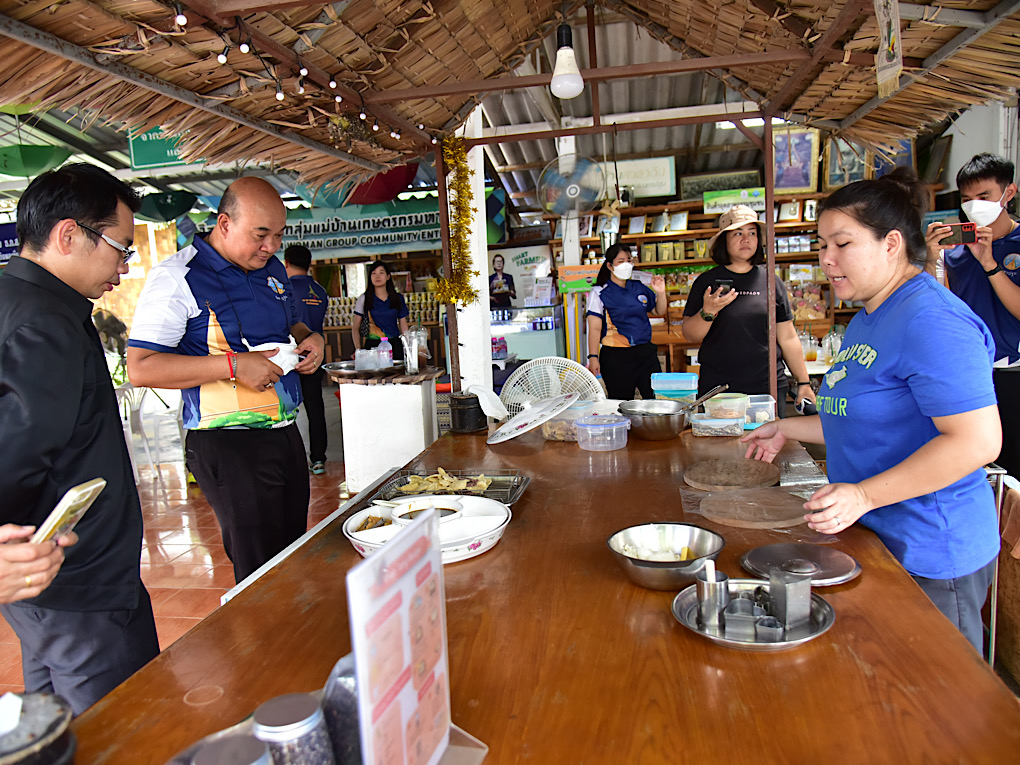 นอกจากนี้ ได้เยี่ยมชมกลุ่มวิสาหกิจชุมชนนาบัวมหาสวัสดิ์ ซึ่งเป็นกลุ่มผลิตชาเกสรดอกบัว กล้วยตาก และมีร้านอาหารสำหรับนั่งรับประทาน โดยกระทรวงพลังงานสนับสนุนการใช้ระบบอบแห้งพลังงานแสงอาทิตย์แบบเคลื่อนที่จำนวน 2 ระบบ ให้กับโครงการพัฒนานครปฐมให้เป็นเมืองอัจฉริยะ ซึ่งเป็นงบพัฒนาจังหวัด ปี 2566 จังหวัดนครปฐมที่มีอัตลักษณ์ด้านแปรรูปด้วยนวัตกรรมและเทคโนโลยี รองรับการท่องเที่ยวเชิงอาหารและวัฒนธรรม โดยมีวัตถุประสงค์เพื่อเป็นการส่งเสริมให้มีการนำเทคโนโลยีพลังงานทดแทนมาใช้ในการเพิ่มมูลค่าผลผลิตทางการเกษตร ให้กับกลุ่มวิสาหกิจชุมชนหรือกลุ่มเกษตรกร โดยใช้เทคโนโลยีอบแห้งด้วยพลังงานแสงอาทิตย์ ลดต้นทุนด้านพลังงานในการแปรรูปผลผลิตทางการเกษตร ช่วยลดระยะเวลาการตากเกสรบัวจากเดิม 8 ชั่วโมงเป็น 4 ชั่วโมง ช่วยในการถนอมอาหารและตากผลผลิตอื่นๆ อาทิ มะม่วงกวน กล้วยตาก ดอกบัวแห้ง และต่อยอดไปสู่การพัฒนาผลิตภัณฑ์อื่นๆ เช่น ชาจากกลีบบัว ชาจากใบบัว เป็นต้น