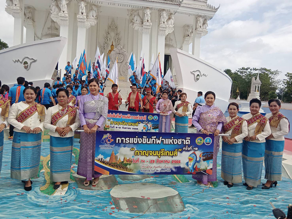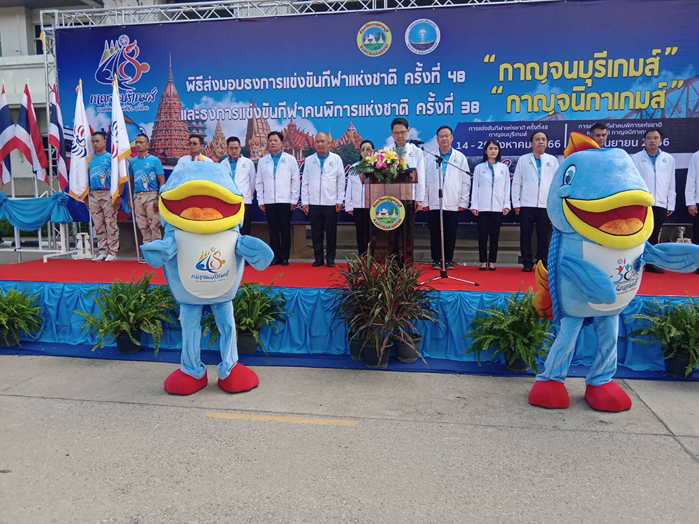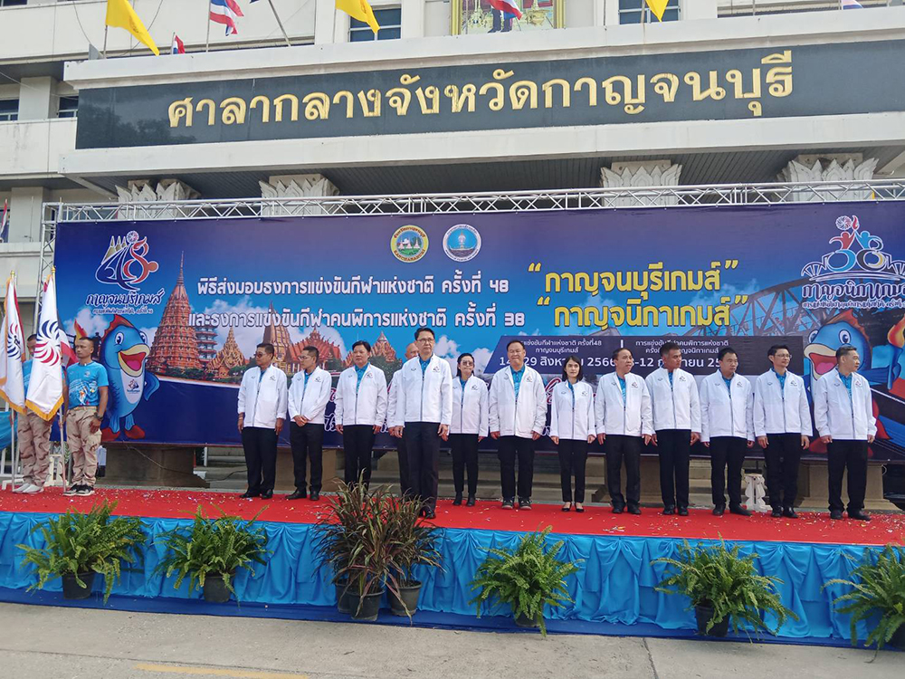 วันที่ 20 กรกฎาคม 2566 ที่หน้าศาลากลางจังหวัดกาญจนบุรี ร้อยโททศพล ไชยโกมินทร์ ผู้ว่าราชการจังหวัดกาญจนบุรี ได้เป็นประธานในพิธีส่งมอบธงการแข่งขันกีฬาแห่งชาติ ครั้งที่ 48 “กาญจนบุรีเกมส์” โดยมี นายรณภพ เวียงสิมมา รองผู้ว่าราชการจังหวัดกาญจนบุรี นายอำเภอทั้ง 13 อำเภอ หัวหน้าส่วนราชการ หน่วยงานที่เกี่ยวข้องและแขกผู้มีเกียรติใ ร่วมพิธีในครั้งนี้