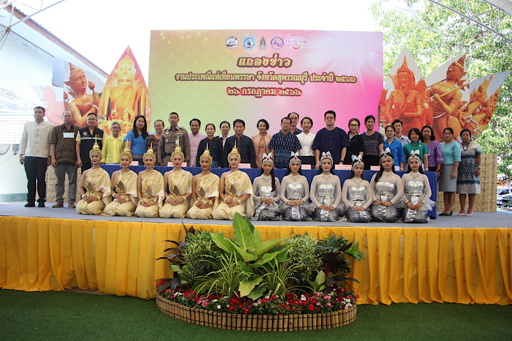 ที่จังหวัดสุพรรณบุรี วันที่ 27 ก.ค.2566 นายณัฐภัทร สุวรรณประทีป ผู้ว่าราชการจังหวัดสุพรรณบุรี เปิดเผยว่าได้ร่วมกับนายศรีธรรม ราชแก้ว ปลัดจังหวัดสุพรรณบุรี พร้อมด้วยหัวหน้าส่วนราชการ แถลงข่าว เตรียมจัดงานประเพณี แห่เทียนพรรษา สุพรรณบุรี ประจำปี 2566 อย่างยิ่งใหญ่ตระการตา โดยจังหวัดสุพรรณบุรี ร่วมกับองค์การบริหารส่วนจังหวัดสุพรรณบุรี การท่องเที่ยวแห่งประเทศไทย ส่วนราชการ อำเภอทุกอำเภอ องค์กรปกครองส่วนท้องถิ่น และภาคเอกชน จัดงานประเพณีแห่เทียนพรรษา ขึ้นระหว่างวันที่ 1-2 สิงหาคม 2566 เพื่อเป็นการอนุรักษ์ สืบสานวัฒนธรรมประเพณีที่ดีงามของชาวพุทธให้คงอยู่สืบต่อไปและเป็นการส่งเสริมการท่องเที่ยวของจังหวัดสุพรรณบุรี ในงานแถลงข่าว มีการแสดง” ระบำปลาม้า วิชชุตาสักการะพระพุทธ ของนักเรียนโรงเรียนบางปลาม้า “สูงสุมารผดุงวิทย์ ณ วัดสัปรสเทศ ตำบลวังยาง อำเภอศรีประจันต์ หลังเสร็จพิธีแถลงข่าว นายณัฐภัทร สุวรรณประทีป ผู้ว่าราชการจังหวัดสุพรรณบุรี นายศรีธรรม ราชแก้ว ปลัดจังหวัดสุพรรณบุรี ได้โชว์การหล่อ เทียนลงแม่พิมพ์ และทดลองแกะสลักเทียน