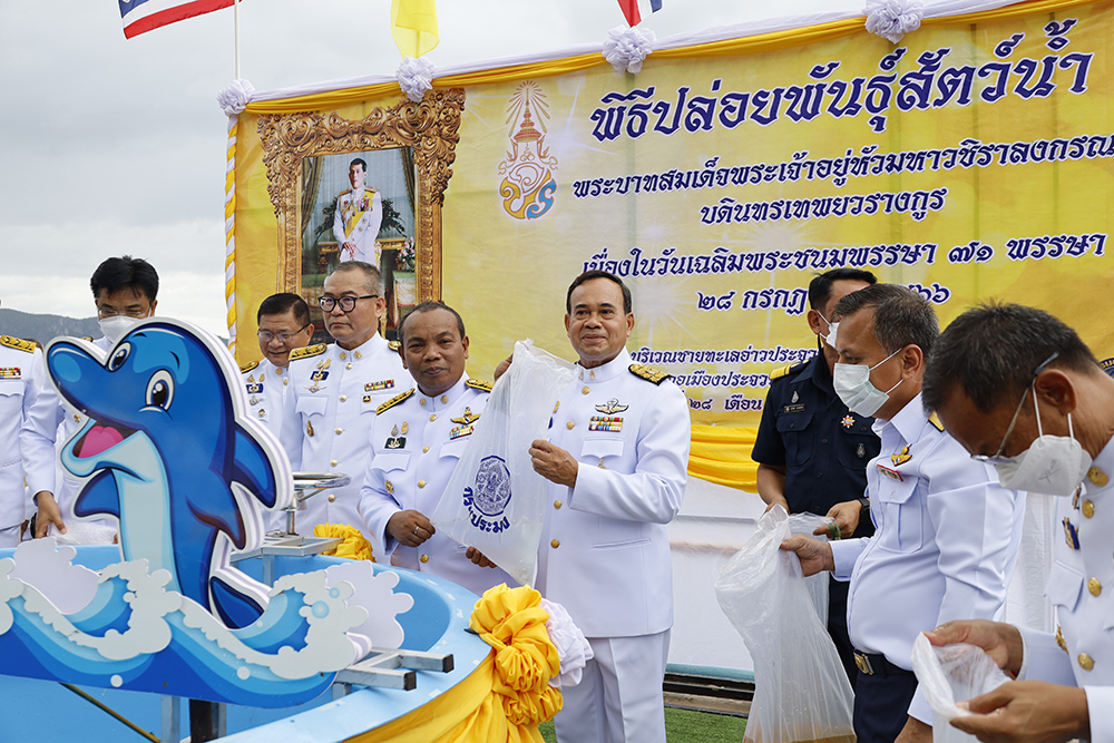 โอกาสนี้ ได้นำหัวหน้าส่วนราชการ ข้าราชการ ประชาชนผู้เข้าร่วมพิธี ร่วมกิจกรรมปล่อยพันธุ์สัตว์น้ำเพื่อเฉลิมพระเกียรติ พระบาทสมเด็จพระเจ้าอยู่หัว รัชกาลที่ 10 ที่ บริเวณอ่าวประจวบฯ ด้านหน้าสำนักงานองค์การบริหารส่วนจังหวัดประจวบคีรีขันธ์ อีกด้วย