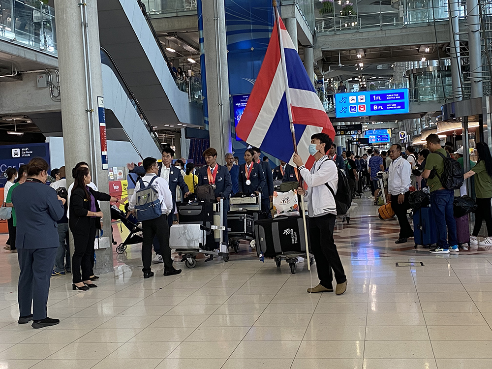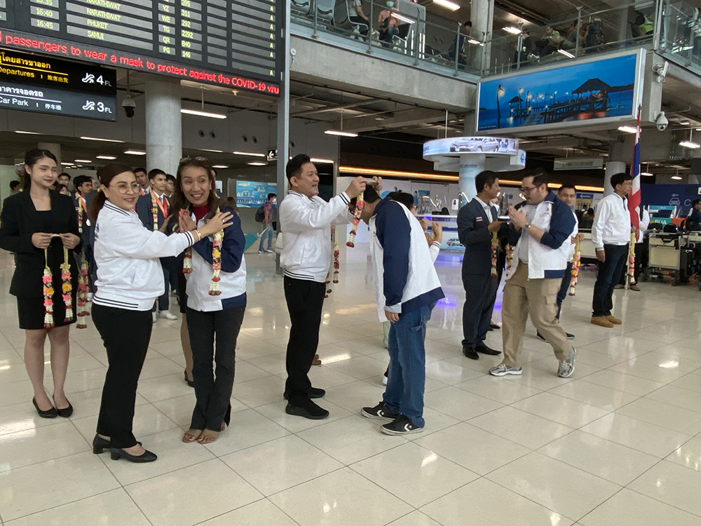 *****เมื่อเวลา 15.30น.วันที่ 28 ก.ค.2566 นางสาวบุปผา เรืองสุด อธิบดีกรมพัฒนาฝีมือแรงงาน และคณะผู้บริหารกระทรวงแรงงาน ไปต้อนรับเยาวชนไทย ทั้ง 24 คนและคณะผู้เชี่ยวชาญที่ไปทำหน้าที่เป็นคณะกรรมการในการแข่งขัน ฝีมือแรงงานอาเซียน ครั้งที่ 13 ที่สิงคโปร์ เดินทางถึงประเทศไทย สายการบิน ไทยแอร์เวล์ เที่ยวบินที่ TG404 เครื่องลง เวลา 14.30 น. ณ ท่าอากาศยานสุวรรณภูมิ